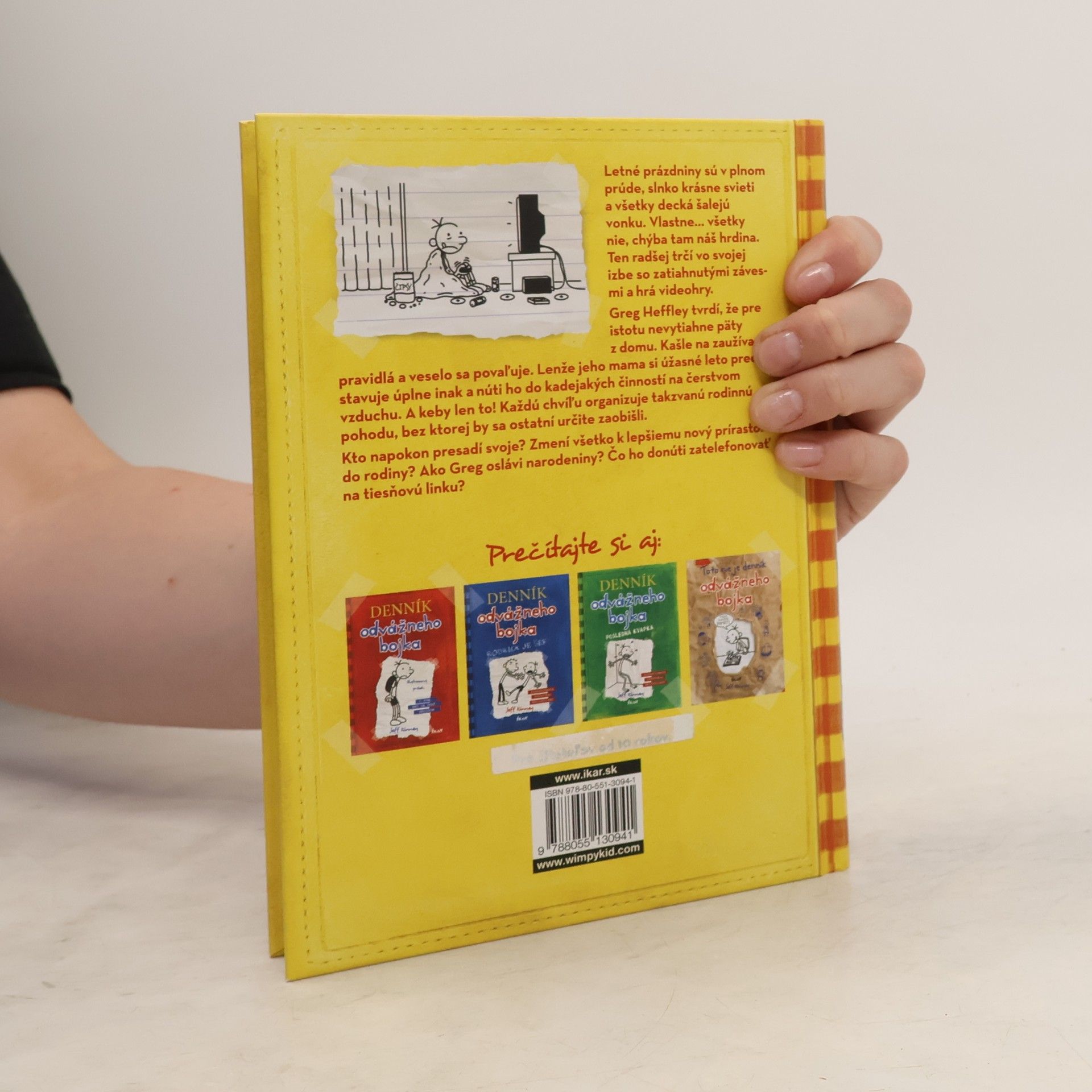 Letné prázdniny sú v plnom prúde, slnko krásne svieti a všetky decká šalejú vonku. Vlastne... všetky nie, chýba tam náš hrdina. Ten radšej trčí vo svojej izbe so zatiahnutými závesmi a hrá videohry. Greg Heffley tvrdí, že pre istotu nevytiahne päty z domu. Kašle na zaužívané pravidlá a veselo sa povaľuje. Lenže jeho mama si úžasné leto predstavuje úplne inak a núti ho do kadejakých činností na čerstvom vzduchu. A keby len to! Každú chvíľu organizuje takzvanú rodinnú pohodu, bez ktorej by sa ostatní určite zaobišli. Kto napokon presadí svoje? Zmení všetko k lepšiemu nový prírastok do rodiny? Ako Greg oslávi narodeniny? Čo ho donúti zatelefonovať na tiesňovú linku?