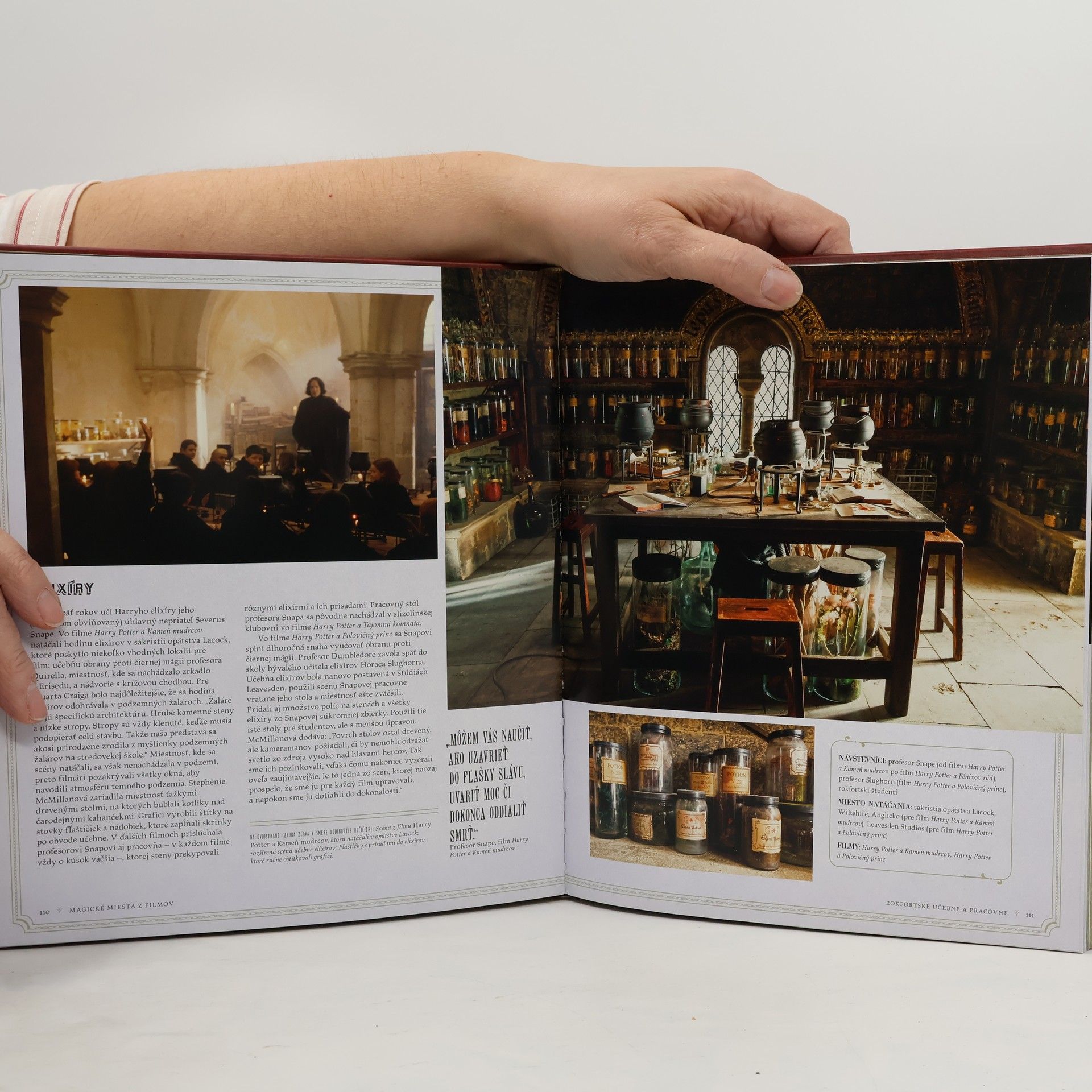 Fanúšikovia Harryho Pottera pozor! Prichádza ďalšia úchvatná publikácia, ktorá odkrýva tajomstvá filmových archívov. Všetci sme pri pozeraní filmov podľahli čaru Rokfortského hradu, väznice Azkaban či Ministerstva mágie. Zapísali sa nám do pamäti rovnako ako obľúbené postavy z knižnej série o Harrym Potterovi. V tejto jedinečnej knihe máte šancu vidieť doteraz nezverejnené skice, fotografie z natáčania, zábery z filmov a spoznať mnohé ďalšie tajomstvá o navrhovaní a výrobe všetkých kúzelných miest pre filmové spracovania série o najpopulárnejšom čarodejníkovi. Kniha Harry Potter: Magické miesta z filmov je ďalšou publikáciou, ktorá nesmie chýbať v zbierke každého pravého fanúšika Harryho Pottera!