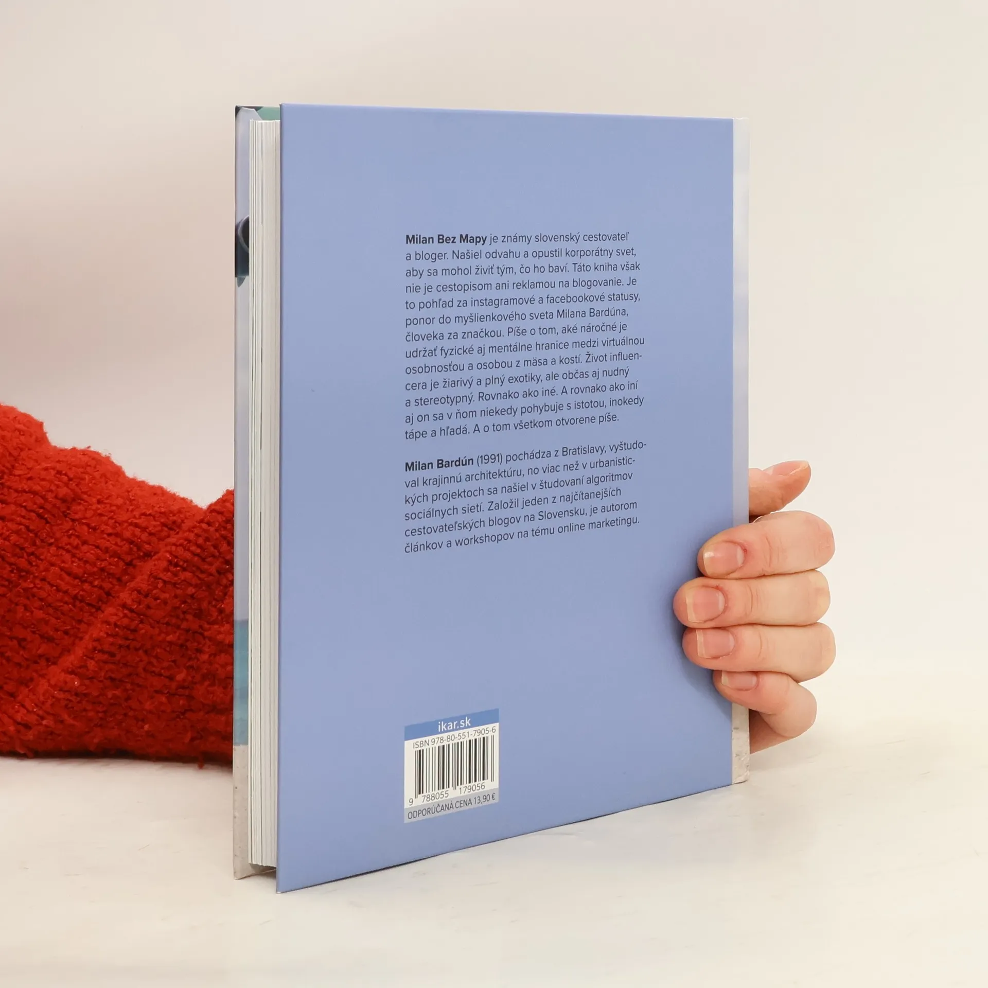 Milan Bez Mapy je známy slovenský cestovateľ a bloger. Našiel odvahu a opustil korporátny svet, aby sa mohol živiť tým, čo ho baví. Táto kniha však nie je cestopisom ani reklamou na blogovanie. Je to pohľad za instagramové a facebookové statusy, ponor do myšlienkového sveta Milana Bardúna, človeka za značkou. Píše o tom, aké náročné je udržať fyzické aj mentálne hranice medzi virtuálnou osobnosťou a osobou z mäsa a kostí. Život influencera je žiarivý a plný exotiky, ale občas aj nudný a stereotypný. Rovnako ako iné. A rovnako ako iní aj on sa v ňom niekedy pohybuje s istotou, inokedy tápe a hľadá. A o tom všetkom otvorene píše.