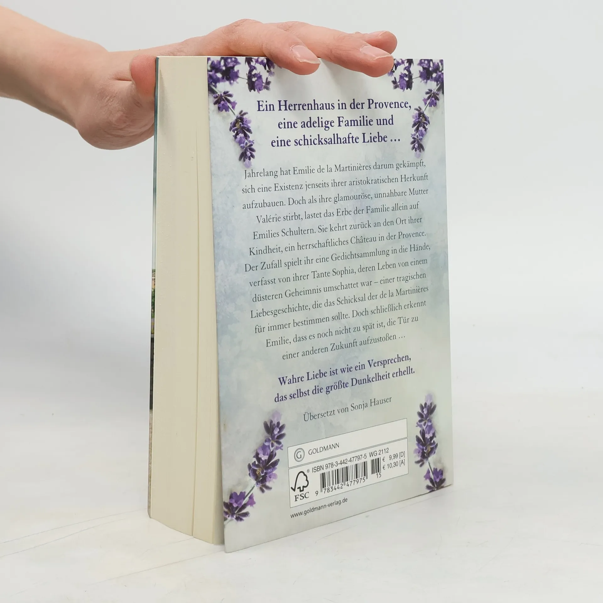 Ein Herrenhaus in der Provence, eine adelige Familie und eine schicksalhafte Liebe in dunklen Zeiten. Jahrelang hat Emilie de la Martinières darum gekämpft, sich eine Existenz jenseits ihrer aristokratischen Herkunft aufzubauen. Doch als ihre glamouröse, unnahbare Mutter Valérie stirbt, lastet das Erbe der Familie allein auf Emilies Schultern. Sie kehrt zurück an den Ort ihrer Kindheit, ein herrschaftliches Château in der Provence. Der Zufall spielt ihr eine Gedichtsammlung in die Hände, verfasst von ihrer Tante Sophia, deren Leben von einem düsteren Geheimnis umschattet war – einer tragischen Liebesgeschichte, die das Schicksal der de la Martinières für immer bestimmen sollte. Doch schließlich erkennt Emilie, dass es noch nicht zu spät ist, die Tür zu einer anderen Zukunft aufzustoßen …