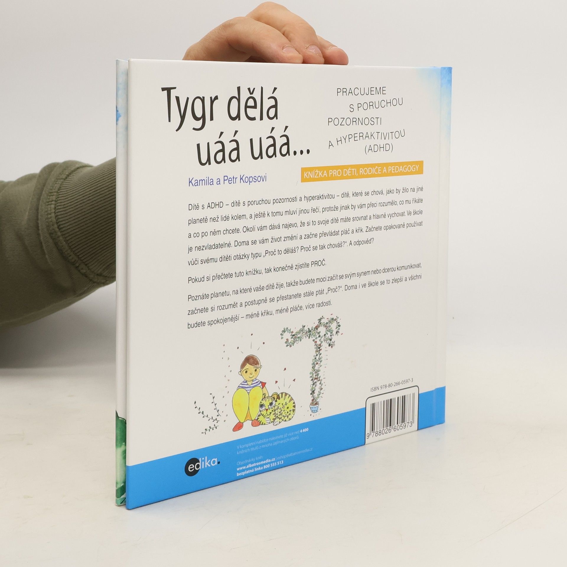 Nejžhavějším tématem současnosti, které se dotýká téměř všech rodičů, pedagogů a samozřejmě mnoha dětí, je ADHD. Strašák, který děsí rodiče i pedagogy. Kniha „Tygr dělá uáá uáá…“ je ojedinělým náhledem do dětské duše, napsaná podle skutečných příběhů dětí právě s tímto syndromem, a to především ve formě hyperaktivity. Hlavním hrdinou příběhu je šestiletý školák Jakub. Postupně seznamuje čtenáře s tím, jak on jako dítě prožívá stav, kterému se říká syndrom ADHD, hyperaktivita. Je to vnitřní svět chlapce, který je sice před rodiči ukrytý, zároveň se ale výrazně projevuje navenek. Kniha čtenářům ukazuje, že pokud problém odhalíme, zároveň objevíme i způsob, jak se s ním vypořádat. A v tom spočívá cenný přínos této publikace. Mile ilustrovaná kniha je výborným pomocníkem rodičů i pedagogů, ale též inspirací pro samotné děti.