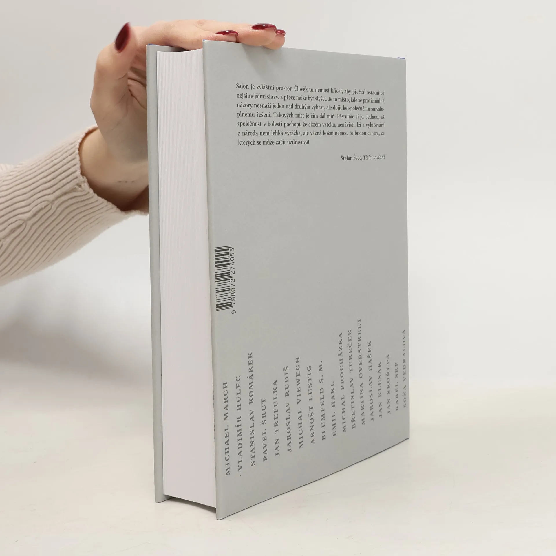 Sto nejživějších textů vybraných z tisíce čísel Salonu, kulturní a literární přílohy deníku Právo. Původní publicistika, eseje od Bělohradského, Kosíka nebo Přibáně. Tvorba českých spisovatelů Hakla, Stančíka, Bellové či Rudiše, texty z pozůstalosti Haška, Hrabala a Skácela. Rozhovory s Vaculíkem, Páralem nebo Updikem a Ferlinghettim. Texty bývalých exulantů i disidentů Hutky, Chramostové nebo Jirouse. Salon byl a je prostorem otevřeného dialogu a propojování témat. Vedle tradiční esejistické, reportážní a recenzní tvorby to dokládá například také seriál Daniela Prokopa Úvod do praktické sociologie, ověnčený nedávno Novinářskou cenou. Uspořádali Zbyněk Vlasák a Štěpán Kučera.