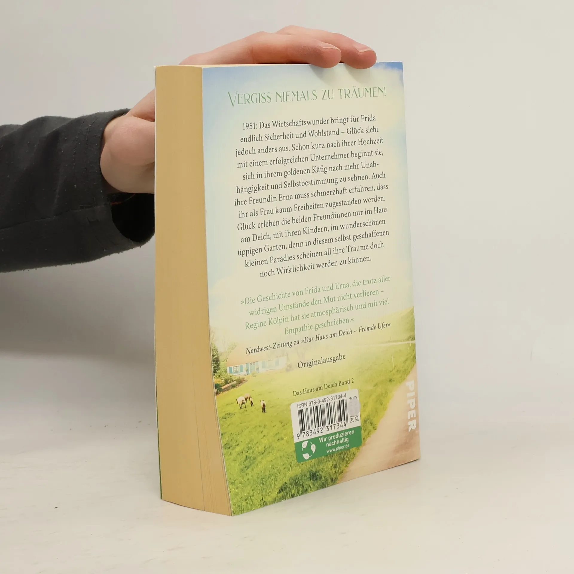 Vergiss niemals zu träumen! In ihrem Roman „Das Haus am Deich – Unruhige Wasser“ setzt SPIEGEL-Bestsellerautorin Regine Kölpin die dramatische Geschichte der Freundinnen Frida und Erna fort. Deren Träume von einer neuen Heimat, Liebe und einem erfüllten Leben machen diesen zweiten Band der dreiteiligen in Norddeutschland angesiedelten Saga zu einer fesselnden und atmosphärischen Lektüre. 1951: Das Wirtschaftswunder bringt für Frida, die mittlerweile mit einem Unternehmer verheiratet ist, zwar Wohlstand – doch Glück sieht anders aus. Nicht nur kriselt es in ihrer Ehe von Anfang an, sie ist auch ein goldener Käfig für Frida, die sich nach Unabhängigkeit sehnt. Ihre Freundin Erna muss ebenfalls schmerzhaft erfahren, dass die Zeit Frauen kaum Freiheiten erlaubt. Glück erleben die Freundinnen nur mit ihren Kindern, vor allem den Töchtern Meike und Sanne, und im Haus am Deich mit seinem üppigen Garten, ihrem selbst geschaffenen kleinen Paradies, in dem Wunder möglich scheinen. Vor der atmosphärischen Kulisse Norddeutschlands entfaltet sich in „Das Haus am Deich“ das Schicksal zweier Frauen und ihrer Familien: wahrhaftig, atmosphärisch und bewegend! Band 1: Das Haus am Deich – Fremde Ufer Band 2: Das Haus am Deich – Unruhige Wasser Band 3: Das Haus am Deich – Sicherer Hafen