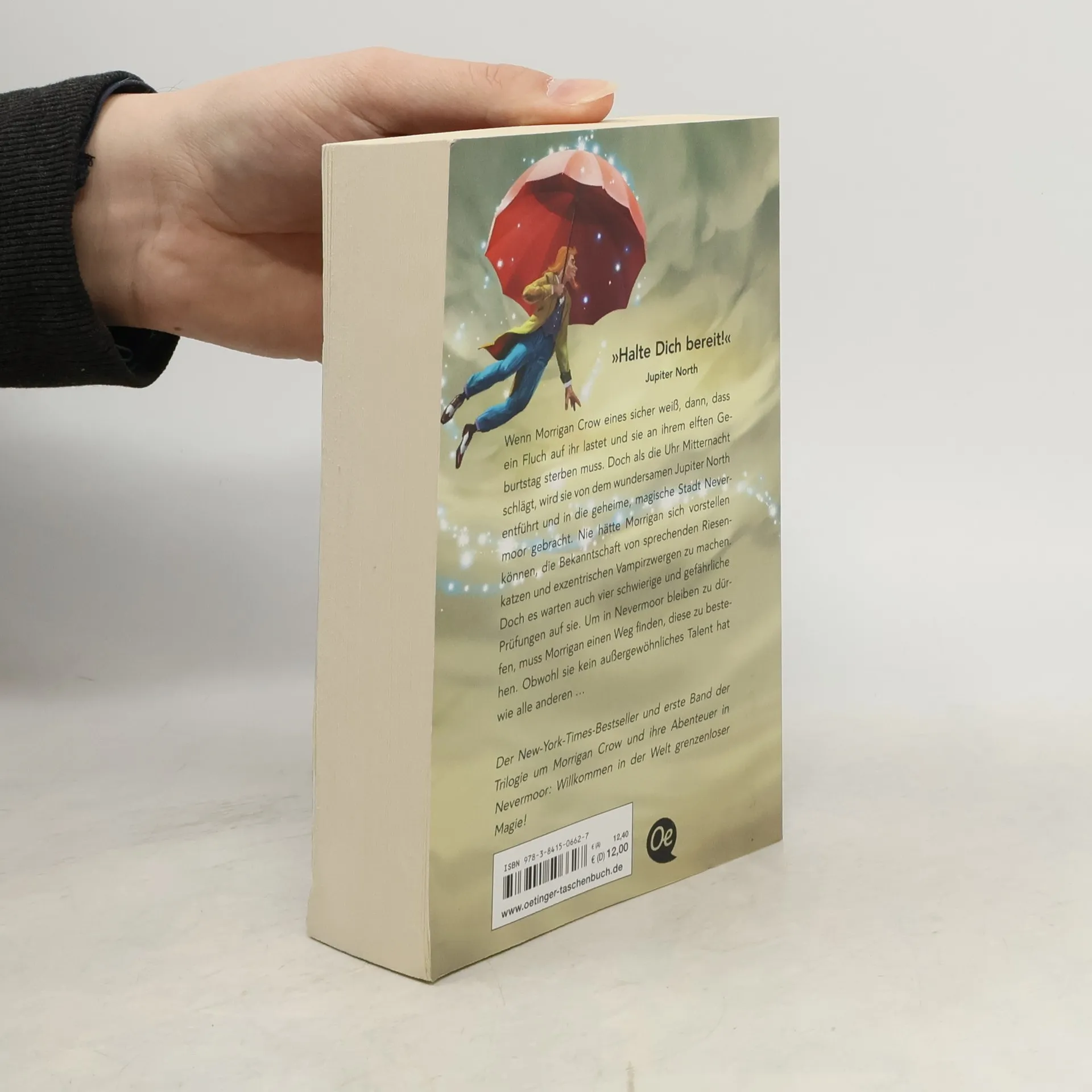 Willkommen in der Welt grenzenloser Magie! Morrigan Crow ist verflucht, an ihrem elften Geburtstag zu sterben. Doch als die Zeiger auf Mitternacht zulaufen, wird sie vom wunderbar seltsamen Jupiter North gerettet und in sein Hotel in der geheimen Stadt Nevermoor gebracht. Dort gibt es riesenhafte, sprechende Katzen, Vampirzwerge und echte Freunde für Morrigan. Doch sie muss schwierige Prüfungen bestehen, um in ihrem neuen Zuhause bleiben zu dürfen, und außer ihr scheint hier jeder ein besonderes Talent zu haben. Oder kann Morrigan vielleicht mehr, als sie ahnt?