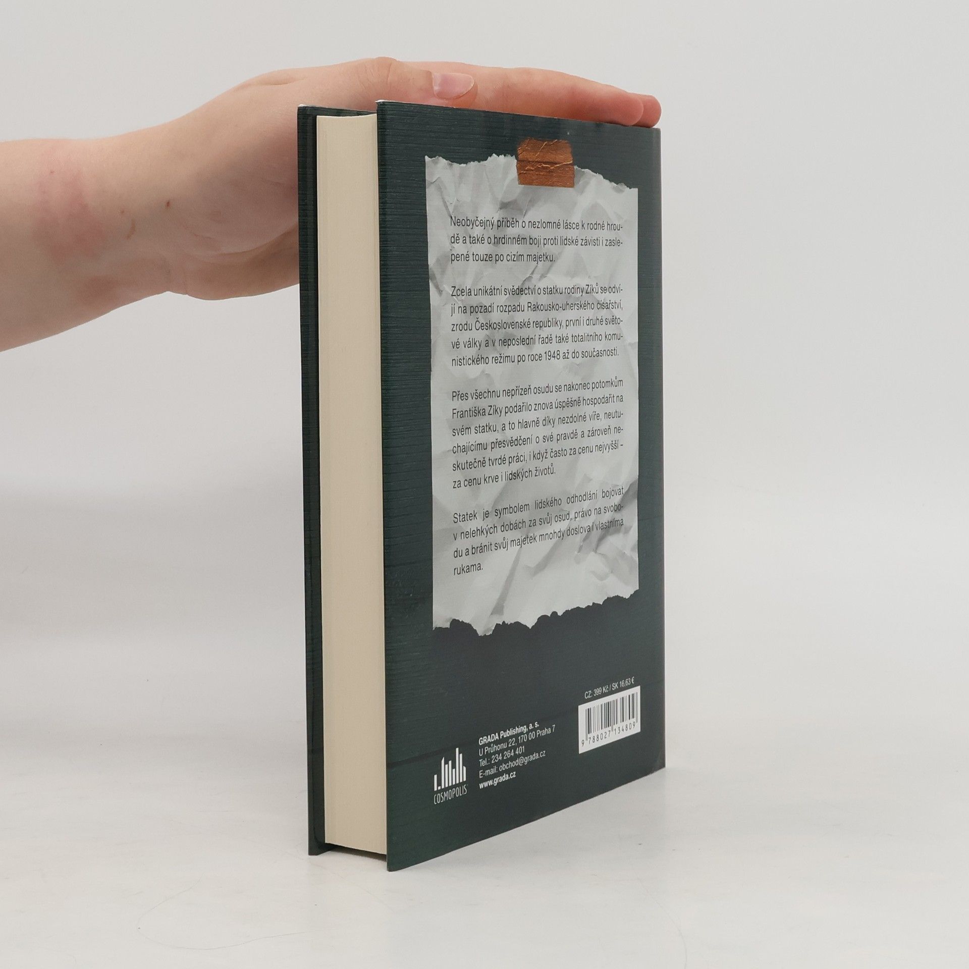 Neobyčejný příběh o nezlomné lásce k rodné hroudě a také o hrdinném boji proti lidské závisti i zaslepené touze po cizím majetku. Zcela unikátní svědectví o statku rodiny Zíků se odvíjí na pozadí rozpadu Rakousko-uherského císařství, zrodu Československé republiky, první i druhé světové války a v neposlední řadě také totalitního komunistického režimu po roce 1948 až do současnosti. Přes všechnu nepřízeň osudu se nakonec potomkům Františka Zíky podařilo znova úspěšně hospodařit na svém statku, a to hlavně díky nezdolné víře, neutuchajícímu přesvědčení o své pravdě a zároveň neskutečně tvrdé práci, i když často za cenu nejvyšší – za cenu krve i lidských životů. Statek je symbolem lidského odhodlání bojovat v nelehkých dobách za svůj osud, právo na svobodu a bránit svůj majetek mnohdy doslova i vlastníma rukama.