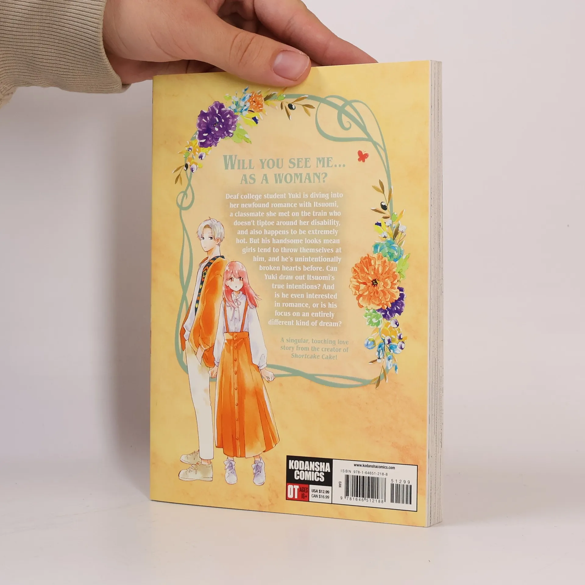 Yuki is a typical college student--it's just that she can't hear. A chance encounter on a train leads to a serious crush...but will he give her a chance? A sweet and relatable manga romance from the creator of Shortcake Cake! Even with a hearing aid, the voices of others are an indistinct blur for Yuki. But she never lets that get in the way of a life full of friends, social media, and cute fashion. One day, she's browsing her phone on train, when a tourist asks her for directions. Yuki nearly panics...until the handsome Itsuomi steps in to help. It turns out her new crush is a friend of a friend, and Yuki's world starts to widen. But even though Itsuomi-kun can speak three languages, sign language isn't one of them. How will Yuki communicate her budding feelings? From the acclaimed author of Shortcake Cake, the hit shojo series with more than a million copies in print, this new work is full of real-life details about Japanese sign language and living without hearing, and it's sure to please fans of romantic stories like A Silent Voice, Kimi ni Todoke, and Love in Focus!