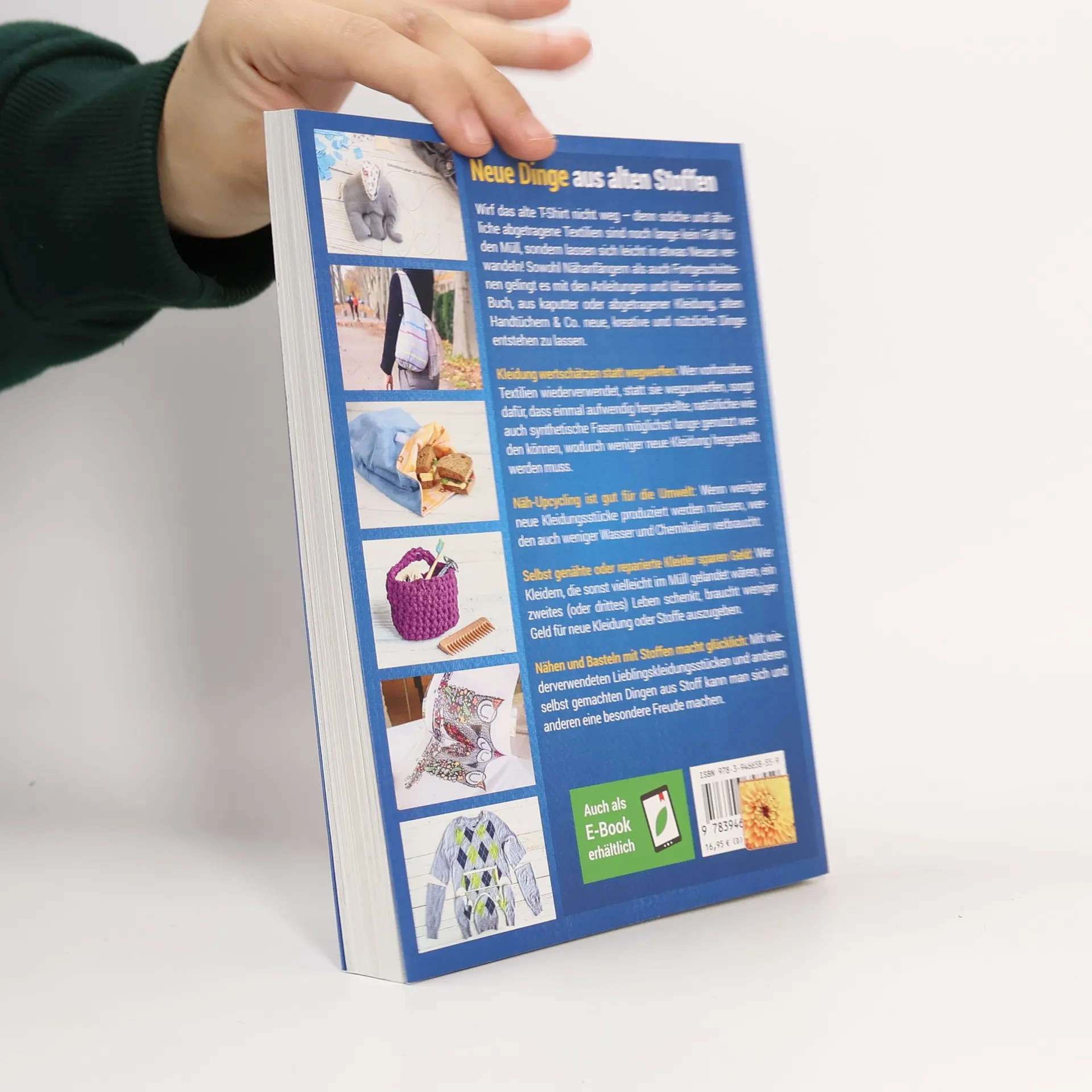 Wirf das alte T-Shirt nicht weg – denn solche und ähnliche abgetragene Textilien sind noch lange kein Fall für den Müll, sondern lassen sich leicht in etwas Neues verwandeln! Sowohl Nähanfängern als auch Fortgeschrittenen gelingt es mit den Anleitungen und Ideen in diesem Buch, aus kaputter oder abgetragener Kleidung, alten Handtüchern & Co. neue, kreative und nützliche Dinge entstehen zu lassen. Kleidung wertschätzen statt wegwerfen: Wer vorhandene Textilien wiederverwendet, statt sie wegzuwerfen, sorgt dafür, dass einmal aufwendig hergestellte, natürliche wie auch synthetische Fasern möglichst lange genutzt werden können, wodurch weniger neue Kleidung hergestellt werden muss. Näh-Upcycling ist gut für die Umwelt: Wenn weniger neue Kleidungsstücke produziert werden müssen, werden auch weniger Wasser und Chemikalien verbraucht. Selbst genähte oder reparierte Kleider sparen Geld: Wer Kleidern, die sonst vielleicht im Müll gelandet wären, ein zweites (oder drittes) Leben schenkt, braucht weniger Geld für neue Kleidung oder Stoffe auszugeben. Nähen und Basteln mit Stoffen macht glücklich: Mit wiederverwendeten Lieblingskleidungsstücken und anderen selbst gemachten Dingen aus Stoff kann man sich und anderen eine besondere Freude machen.