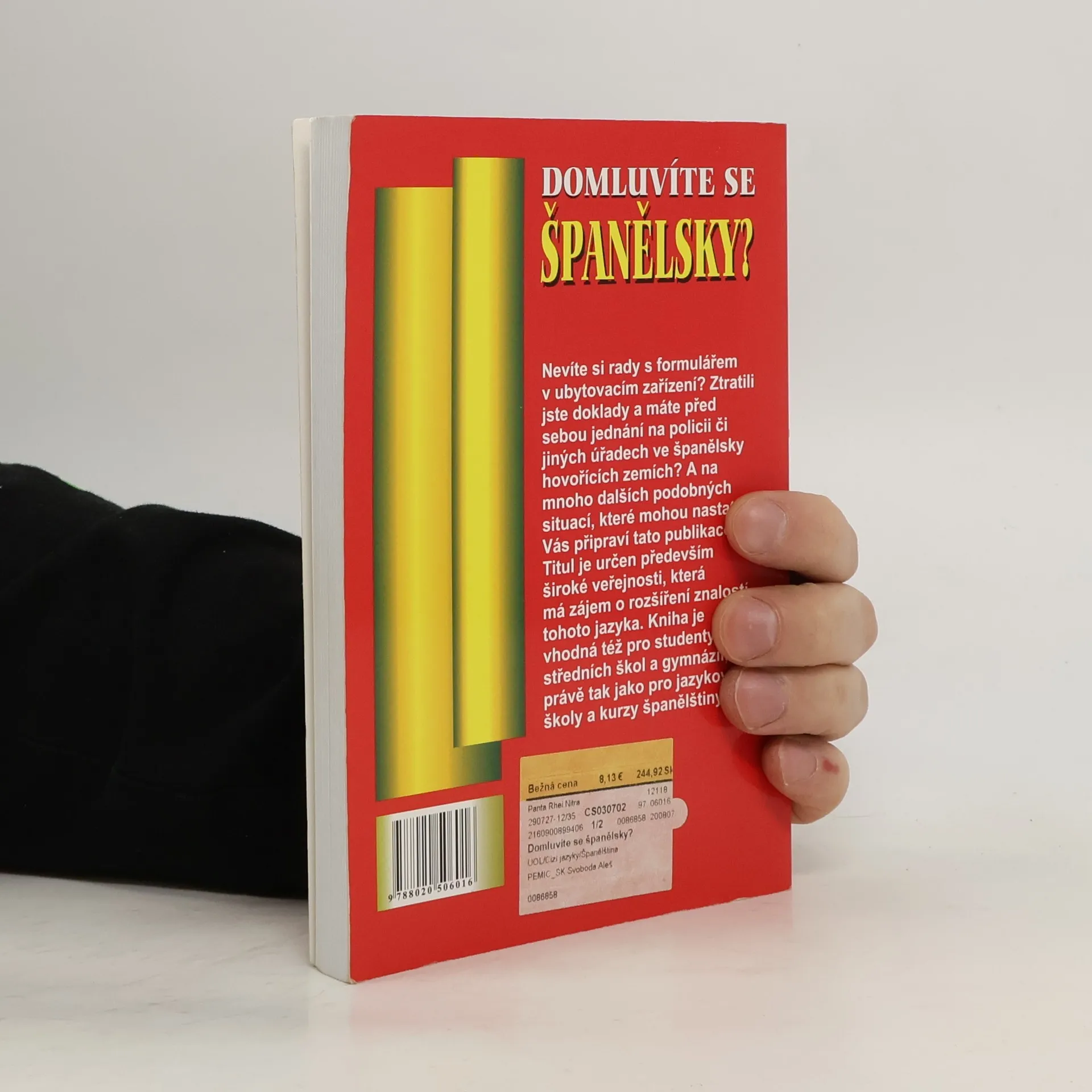 Nevíte si rady s formulářem v ubytovacím zařízení? Ztratili jste doklady a máte před sebou jednání na policii či jiných úřadech ve španělsky hovořících zemích? A na mnoho dalších podobných situací, které mohou nastat, Vás připraví tato publikace. Titul je určen především široké veřejnosti, která má zájem o rozšíření znalostí tohoto jazyka. Kniha je vhodná též pro pro studenty středních škol a gymnázií,právě tak jako pro jazykové školy a kurzy španělštiny.