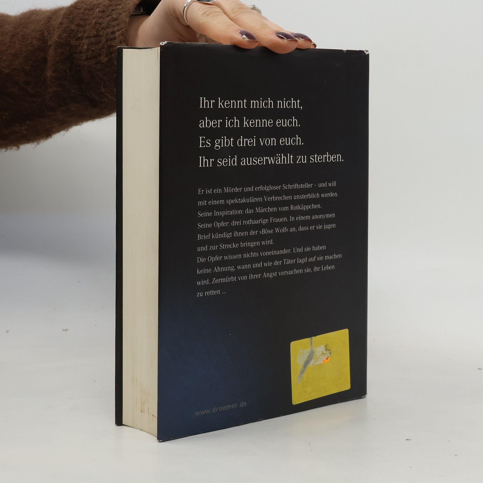 Er ist ein Mörder und erfolgloser Schriftsteller – und will mit einem spektakulären Verbrechen unsterblich werden. Seine Inspiration: das Märchen vom “Rotkäppchen”. Seine Opfer: drei rothaarige Frauen. In einem anonymen Brief kündigt ihnen der „böse Wolf“ an, dass er sie jagen und zur Strecke bringen wird Die Opfer wissen nichts voneinander. Und sie haben keine Ahnung, wann und wie der Täter Jagd auf sie machen wird. Zermürbt von ihrer Angst versuchen sie, ihr Leben zu retten ...
