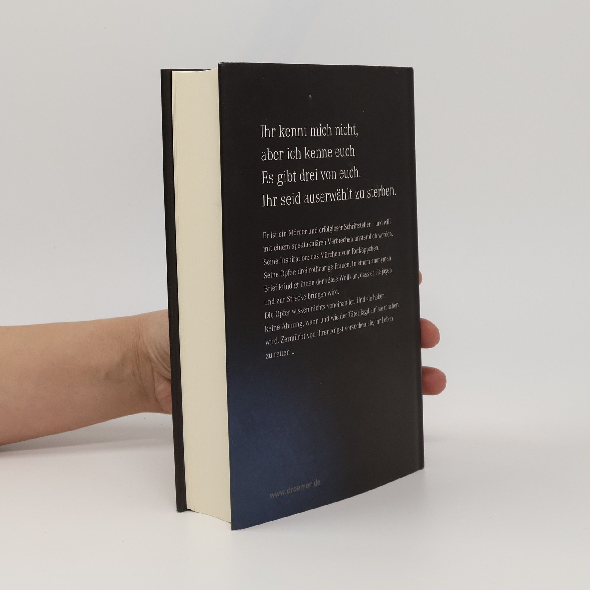 Er ist ein Mörder und erfolgloser Schriftsteller – und will mit einem spektakulären Verbrechen unsterblich werden. Seine Inspiration: das Märchen vom “Rotkäppchen”. Seine Opfer: drei rothaarige Frauen. In einem anonymen Brief kündigt ihnen der „böse Wolf“ an, dass er sie jagen und zur Strecke bringen wird Die Opfer wissen nichts voneinander. Und sie haben keine Ahnung, wann und wie der Täter Jagd auf sie machen wird. Zermürbt von ihrer Angst versuchen sie, ihr Leben zu retten ...