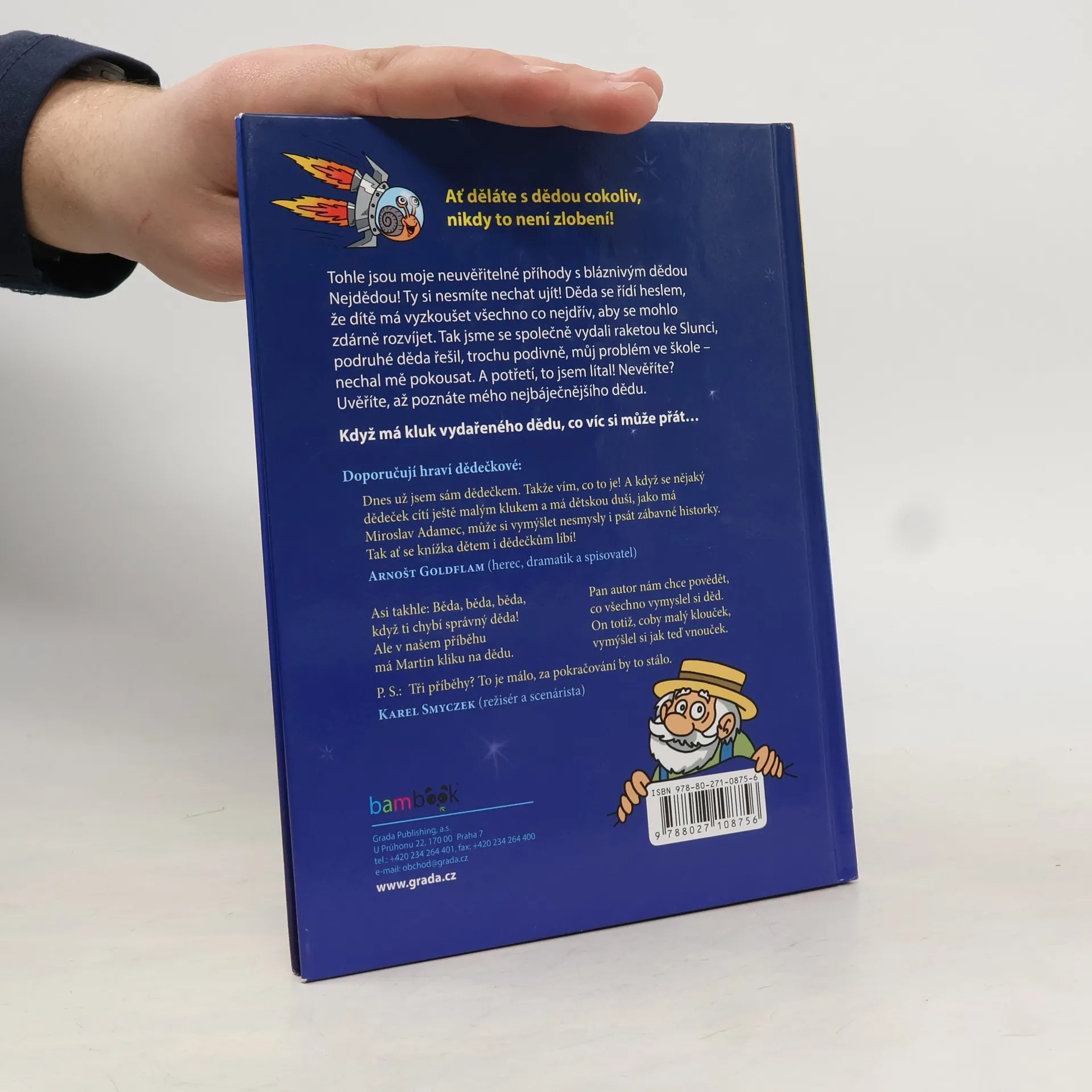 Ať děláte s dědou cokoliv, nikdy to není zlobení. Tohle jsou moje neuvěřitelné příhody s bláznivým dědou! Ty si nesmíte nechat ujít! Děda se řídí heslem, že dítě má vyzkoušet všechno co nejdřív, aby se mohlo zdárně rozvíjet. Tak jsme se s dědou vydali raketou ke Slunci, podruhé děda řešil, trochu podivně, můj problém ve škole – nechal mě pokousat. A potřetí, to jsem lítal. Nevěříte? Uvěříte, až poznáte mého nejbáječnějšího dědu.
