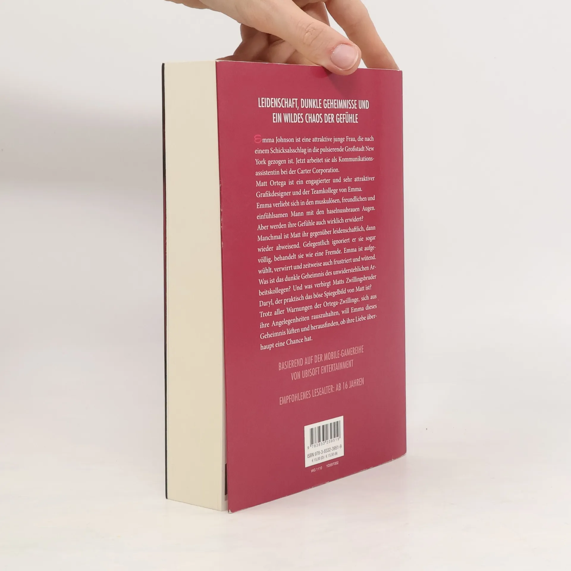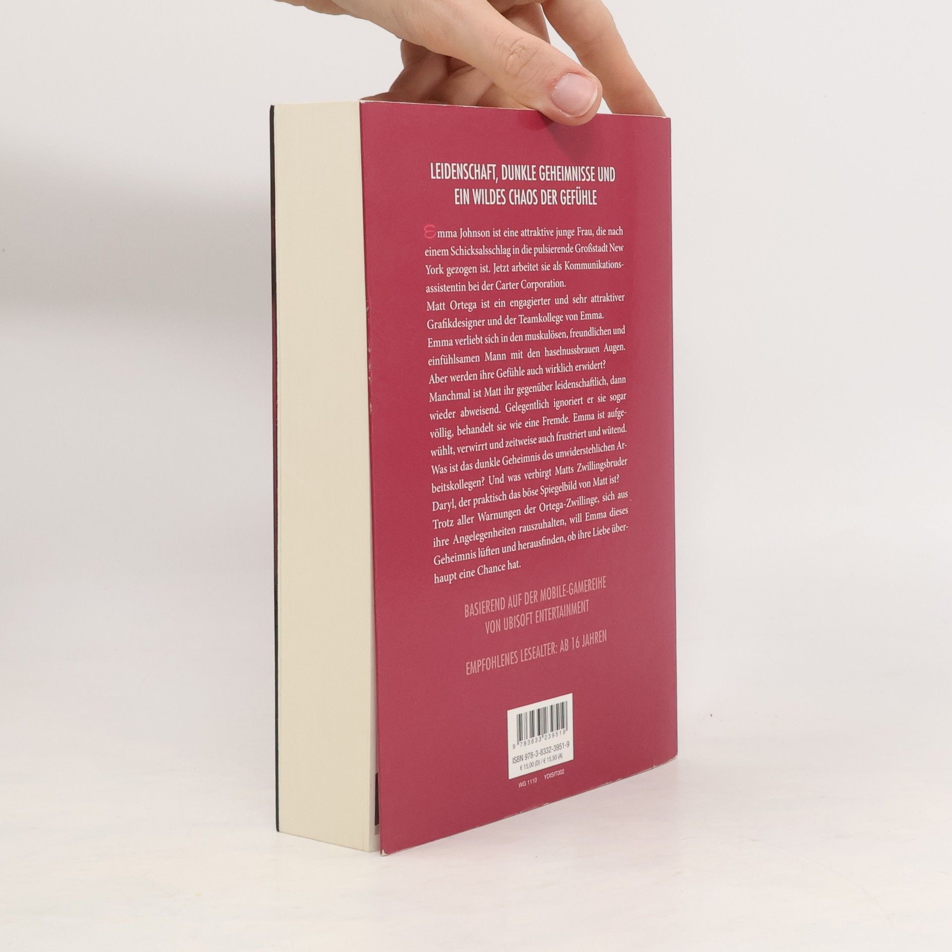 LEIDENSCHAFT, DUNKLE GEHEIMNISSE UND EIN WILDES CHAOS DER GEFÜHLE Emma Johnson ist eine attraktive junge Frau, die nach einem Schicksalsschlag in die pulsierende Großstadt New York gezogen ist. Jetzt arbeitet sie als Kommunikationsassistentin bei der Carter Corporation. Matt Ortega ist ein engagierter und sehr attraktiver Grafikdesigner und der Teamkollege von Emma. Emma verliebt sich in den muskulösen, freundlichen und einfühlsamen Mann mit den haselnussbrauen Augen. Aber werden ihre Gefühle auch wirklich erwidert? Manchmal ist Matt ihr gegenüber leidenschaftlich, dann wieder abweisend. Gelegentlich ignoriert er sie sogar völlig, behandelt sie wie eine Fremde. Emma ist aufgewühlt, verwirrt und zeitweise auch frustriert und wütend. Was ist das dunkle Geheimnis des unwiderstehlichen Arbeitskollegen? Und was verbirgt Matts Zwillingsbruder Daryl, der praktisch das böse Spiegelbild von Matt ist? Trotz aller Warnungen der Ortega-Zwillinge, sich aus ihren Angelegenheiten rauszuhalten, will Emma dieses Geheimnis lüften und herausfinden, ob ihre Liebe überhaupt eine Chance hat. BASIEREND AUF DER MOBILE-GAMEREIHE VON UBISOFT ENTERTAINMENT EMPFOHLENES LESEALTER: AB 16 JAHREN