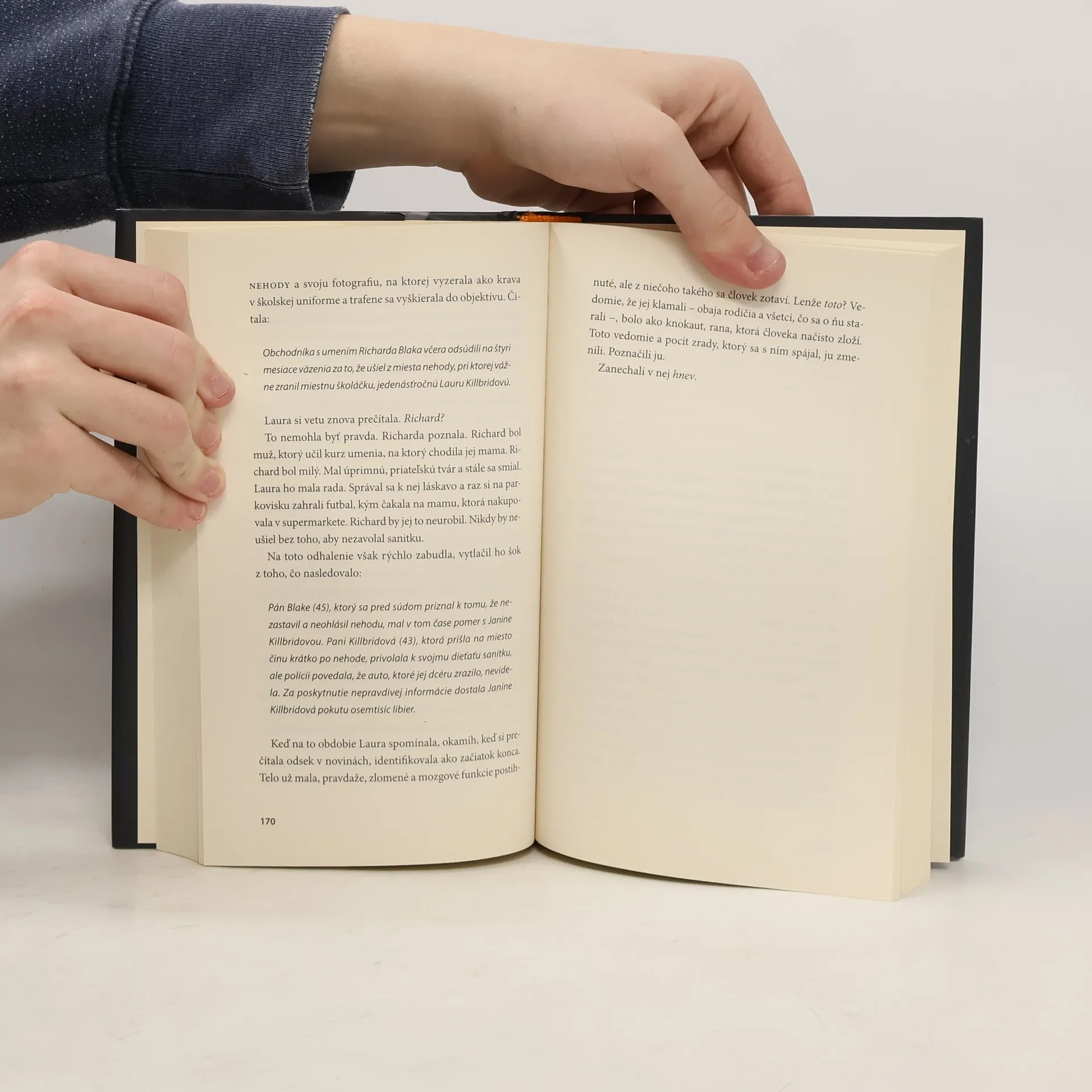 Paula Hawkins opäť majstrovsky rozohráva napínavý príbeh o klamstve a pomste a vťahuje čitateľov do deja s rovnakou energiou ako v bestselleroch Dievča vo vlaku a Do vody. Tri ženy a jedna brutálna vražda. Telo zavraždeného mladého muža na obytnom člne v Londýne vyvoláva mnohé otázky. Laura strávila s mladíkom iba jednu noc, no po boku obete ju videli poslednú. Zvedavá suseda Miriam z vlastnej skúsenosti vie, ako ľahko sa človek ocitne v nesprávnom čase na nesprávnom mieste a že krv na šatách nutne neusvedčuje vraha. Carla ešte vždy oplakáva smrť jedného člena rodiny, keď sa dozvie o vražde druhého – svojho synovca. Všetky tri ženy v sebe z rozličných dôvodov dusia pocit trpkosti za krivdy, ktoré ich postretli v minulosti, a hoci si to neuvedomujú, túžia ich napraviť.
