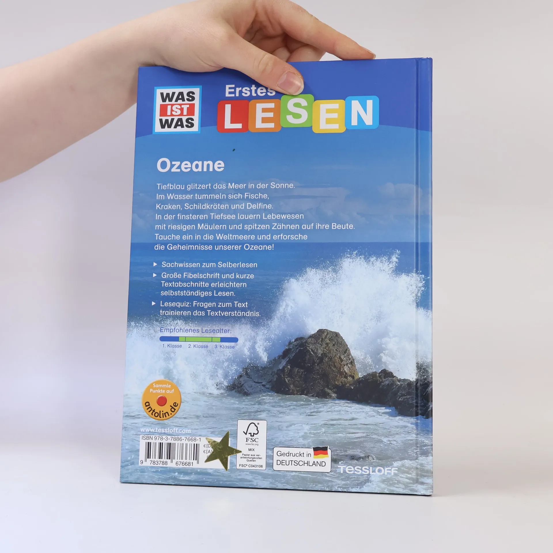 Ozeane und Meere bedecken mehr als 70 Prozent der Erdoberfläche - und sie bergen jede Menge Geheimnisse. Otto, der schlaue Oktopus, erforscht gemeinsam mit den Leseanfängern im Buch aus der Reihe WAS IST WAS Erstes Lesen diesen aufregenden Lebensraum. Sie lernen die drei großen Ozeane kennen, erfahren, wie tief ein Mensch tauchen kann, was ein U-Boot ausmacht und dass Korallenriffe die größten Bauwerke der Welt sind. Sogar ein Abstecher an die Pole steht auf dem Plan! Lustige Lesequizze am Ende jedes Kapitels und am Ende des Buchs fragen das Gelernte auf unterhaltsame Art ab und vertiefen das neuerworbene Wissen.