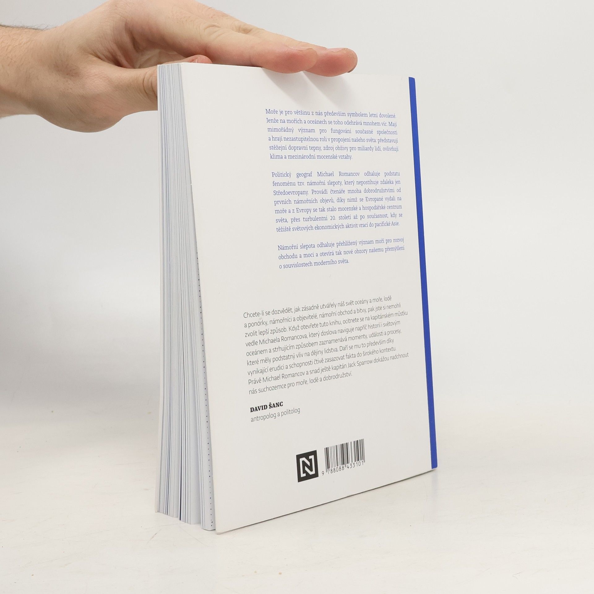 Přehlížený význam moří pro rozvoj obchodu a moci. Moře představuje pro většinu z nás především symbol letní dovolené. Jenže na mořích a oceánech se toho odehrává mnohem víc. Politický geograf Michael Romancov odhaluje podstatu fenoménu tzv. námořní slepoty a provádí čtenáře mnoha dobrodružstvími od prvních námořních objevů až po současnost. Námořní slepota odhaluje přehlížený význam moří pro rozvoj obchodu a moci a otevírá nové obzory našemu přemýšlení o souvislostech moderního světa.