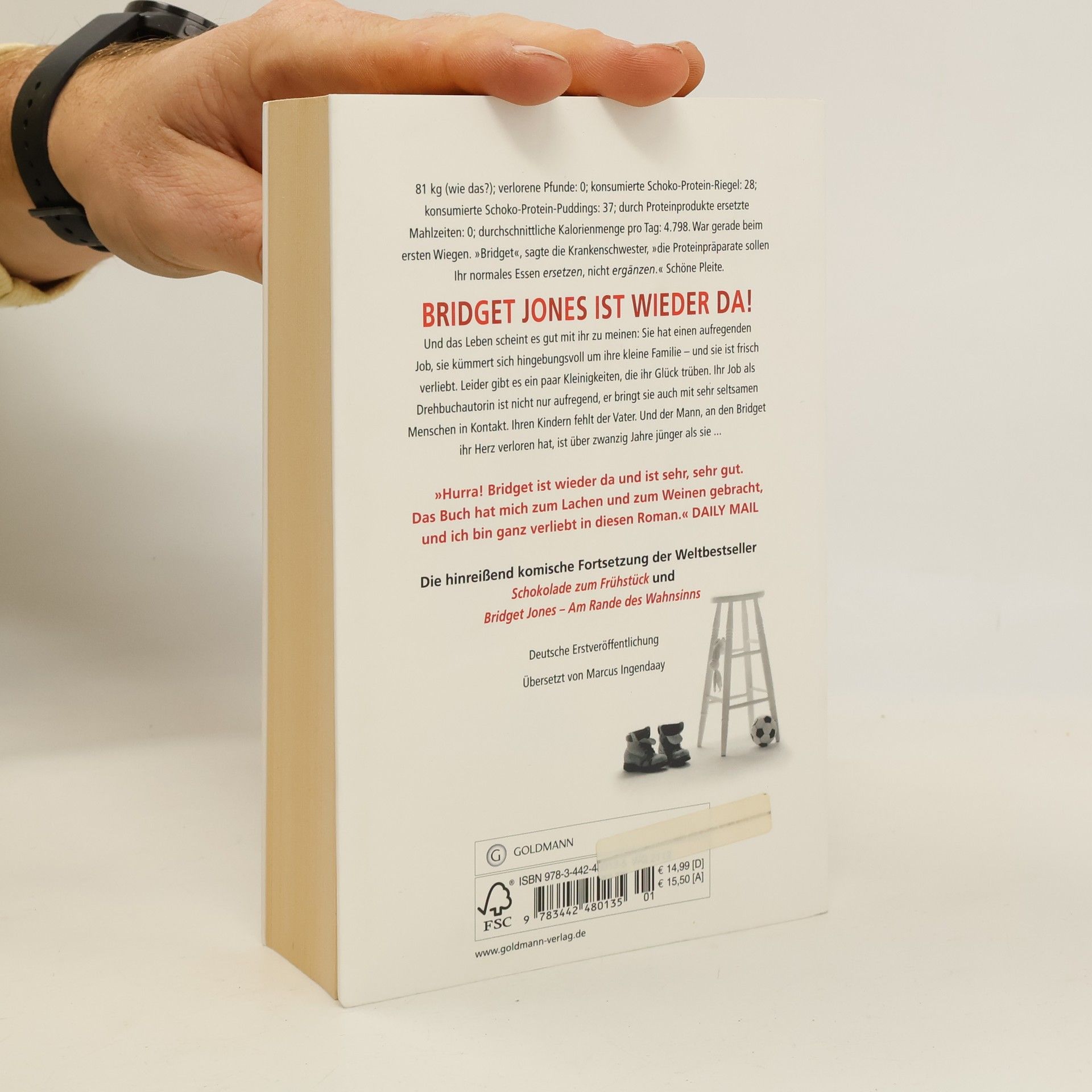 Bridget is back! 78 kg; verputzte Protein-Schokoriegel: 28; verputzte Protein-Schokopuddings: 37; durch Protein-Schokoriegel bzw. -puddings ersetzte Mahlzeiten: 0; abgenommene Pfund: 0; zugelegte Pfund: 4,5. War gerade bei Gewichtskontrolle. „Bridget, Sie sollten die Proteinprodukte statt Ihrer normalen Mahlzeiten zu sich nehmen, nicht zusätzlich.“ Schöne Pleite. Bridget Jones ist wieder da! Und das Leben scheint es gut mit ihr zu meinen: Sie hat einen aufregenden Job, sie kümmert sich hingebungsvoll um ihre kleine Familie – und sie ist frisch verliebt. Leider gibt es ein paar Kleinigkeiten, die ihr Glück trüben. Ihr Job als Drehbuchautorin ist nicht nur aufregend, er bringt sie auch mit sehr seltsamen Menschen in Kontakt. Ihren Kindern fehlt der Vater. Und der Mann, an den Bridget ihr Herz verloren hat, ist über zwanzig Jahre jünger als sie ...