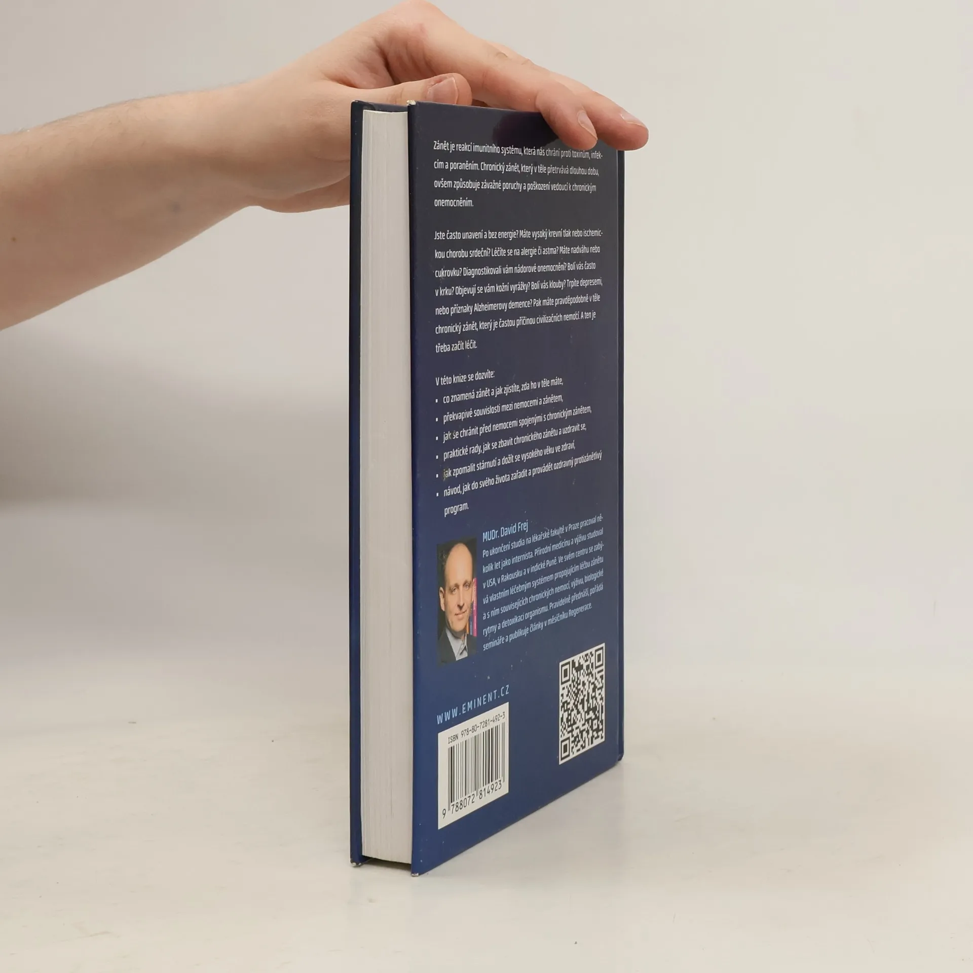 Mudr. David Frej je odborník v ajurvédě, kterou vysvětluje v českých podmínkách. Má rozumné názory. V knize popisuje záněty v těle, jak škodí a jak s nimi bojovat.