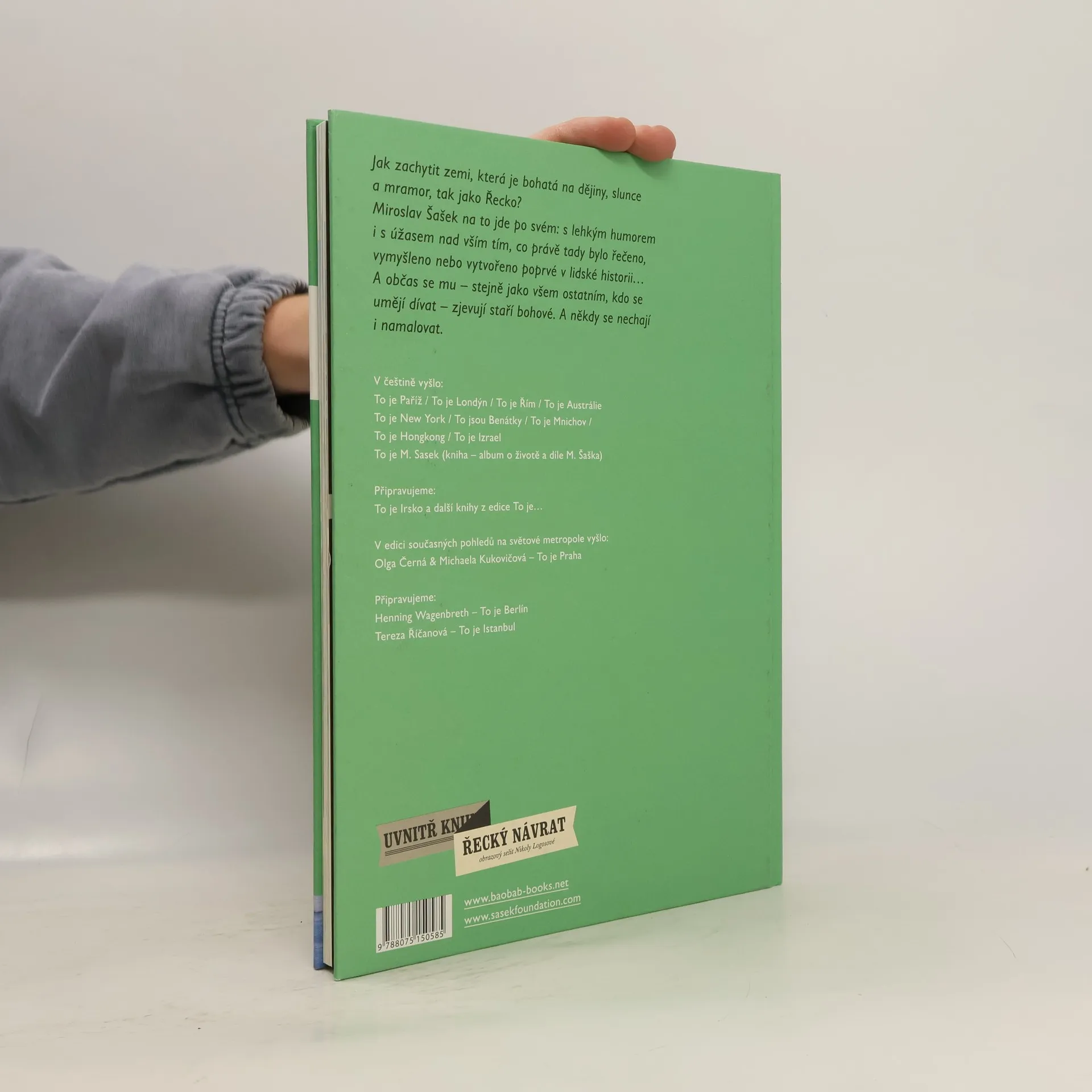 Obrazový průvodce po Řecku z řady To je… od Miroslava Šaška s vloženým sešitem současné autorky Nikoly Logosové. Přichází další kniha z edice průvodců od světově uznávaného ilustrátora Miroslava Šaška, v případě Řecka doplněný o aktuální a osobní pohled současné výtvarnice Nikoly Logosové. Řecko – jak zachytit zemi, která je bohatá na dějiny, slunce a mramor, tak jako Řecko? Miroslav Šašek na to jde po svém: s lehkým humorem i s úžasem nad vším tím, co právě tady bylo řečeno, vymyšleno nebo vytvořeno poprvé v lidské historii... A občas se mu – stejně jako všem ostatním, kdo se umějí dívat – zjevují staří bohové. A někdy se nechají i namalovat.
