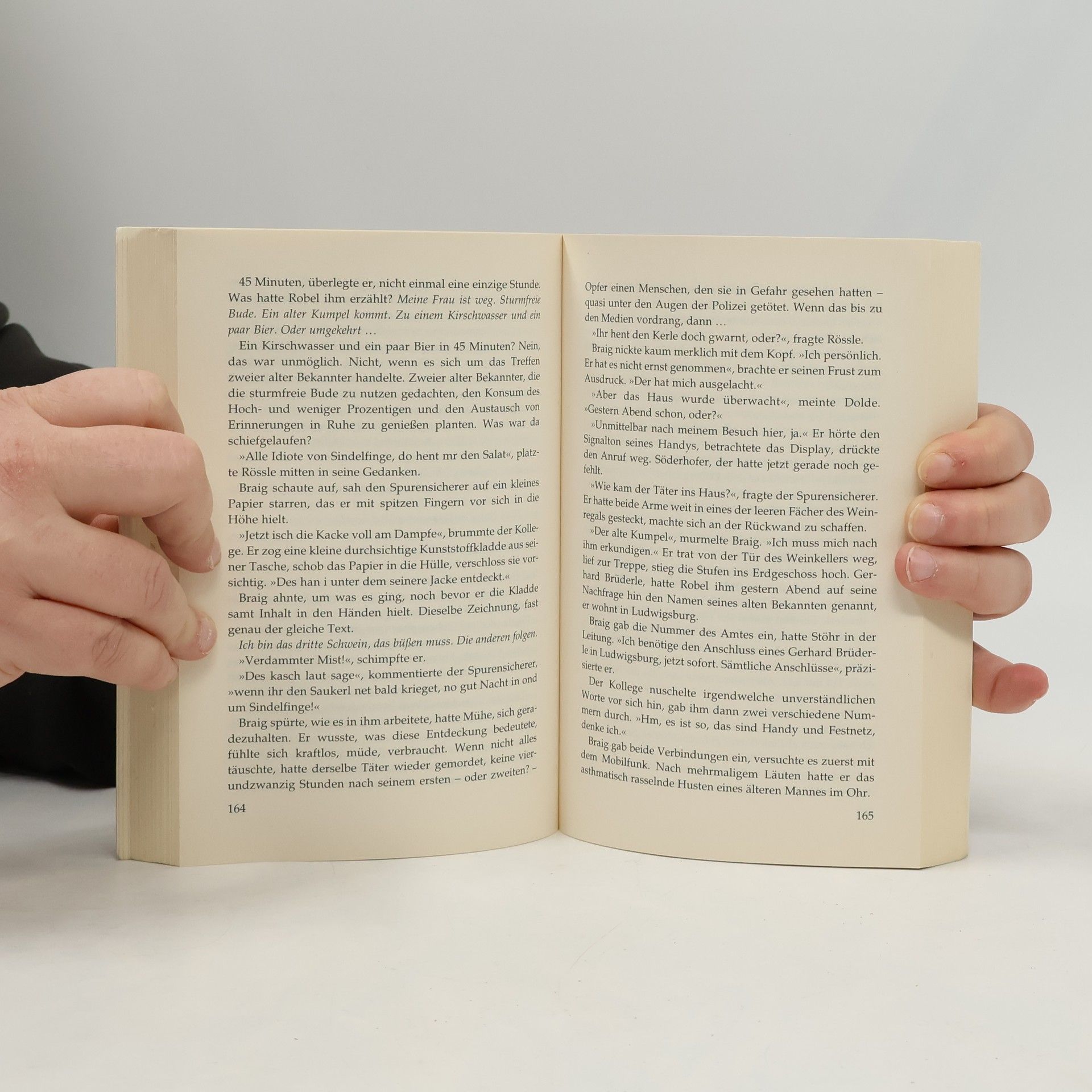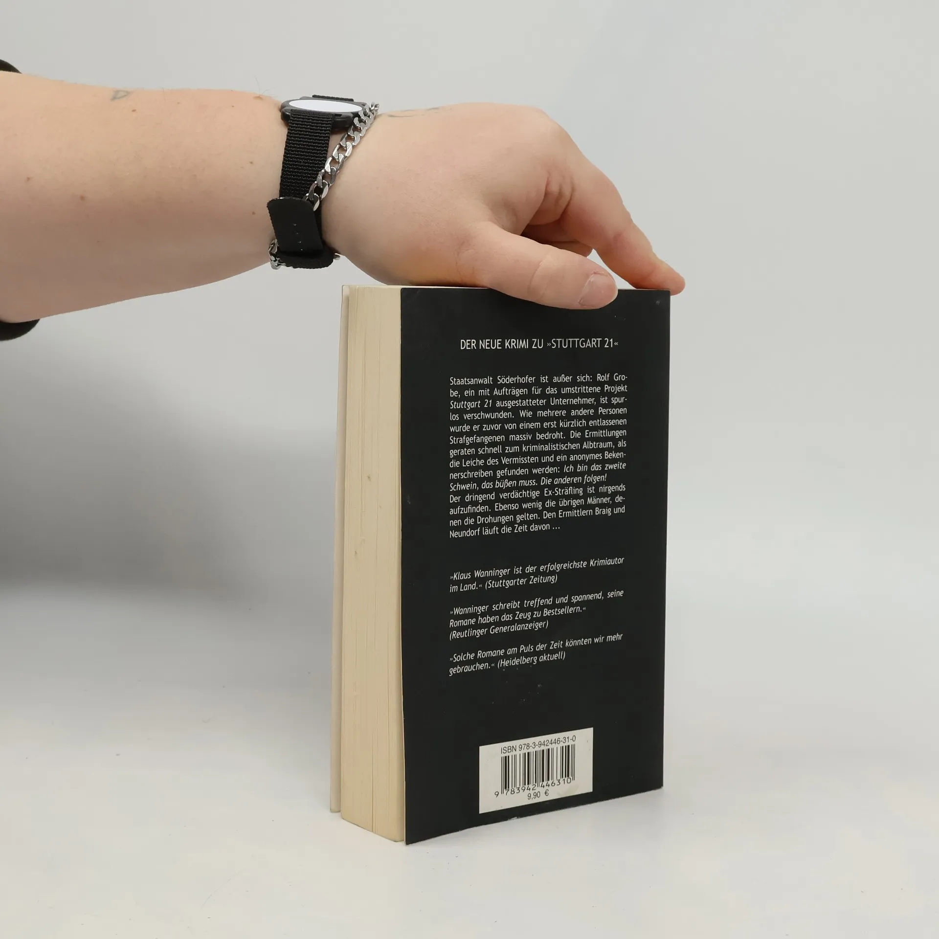 Der Stuttgarter Staatsanwalt Söderhofer ist außer sich: Ralf Grobe, ein erfolgreicher, mit Aufträgen für das umstrittene Projekt „Stuttgart 21“ ausgestatteter Unternehmer, ist spurlos verschwunden. Wie mehrere andere Personen ist er zuvor von einem erst kürzlich entlassenen Strafgefangenen massiv bedroht worden. Noch während Kriminalhauptkommissar Steffen Braig die Suche nach dem Mann in die Wege leitet, werden am Rand des Schlossparks von Stuttgart-Hohenheim die sterblichen Überreste des Vermissten gefunden. Grobe wurde mit zwei Schüssen getötet. Was zunächst nach einer Routineermittlung aussieht, entpuppt sich rasch als kriminalistischer Albtraum, denn ein anonymes Bekennerschreiben verkündet: „Ich bin das zweite Schwein, das büßen muss. Die anderen folgen!“ Und der dringend verdächtige Ex-Sträfling ist nirgends aufzufinden. Weitaus schwerwiegender ist aber die Tatsache, dass auch die übrigen Männer, denen die Drohungen gelten, nicht aufzufinden sind, so sehr sich Braig und Neundorf auch bemühen. Ihr übermächtiger Gegner wird die gnadenlos verrinnende Zeit …