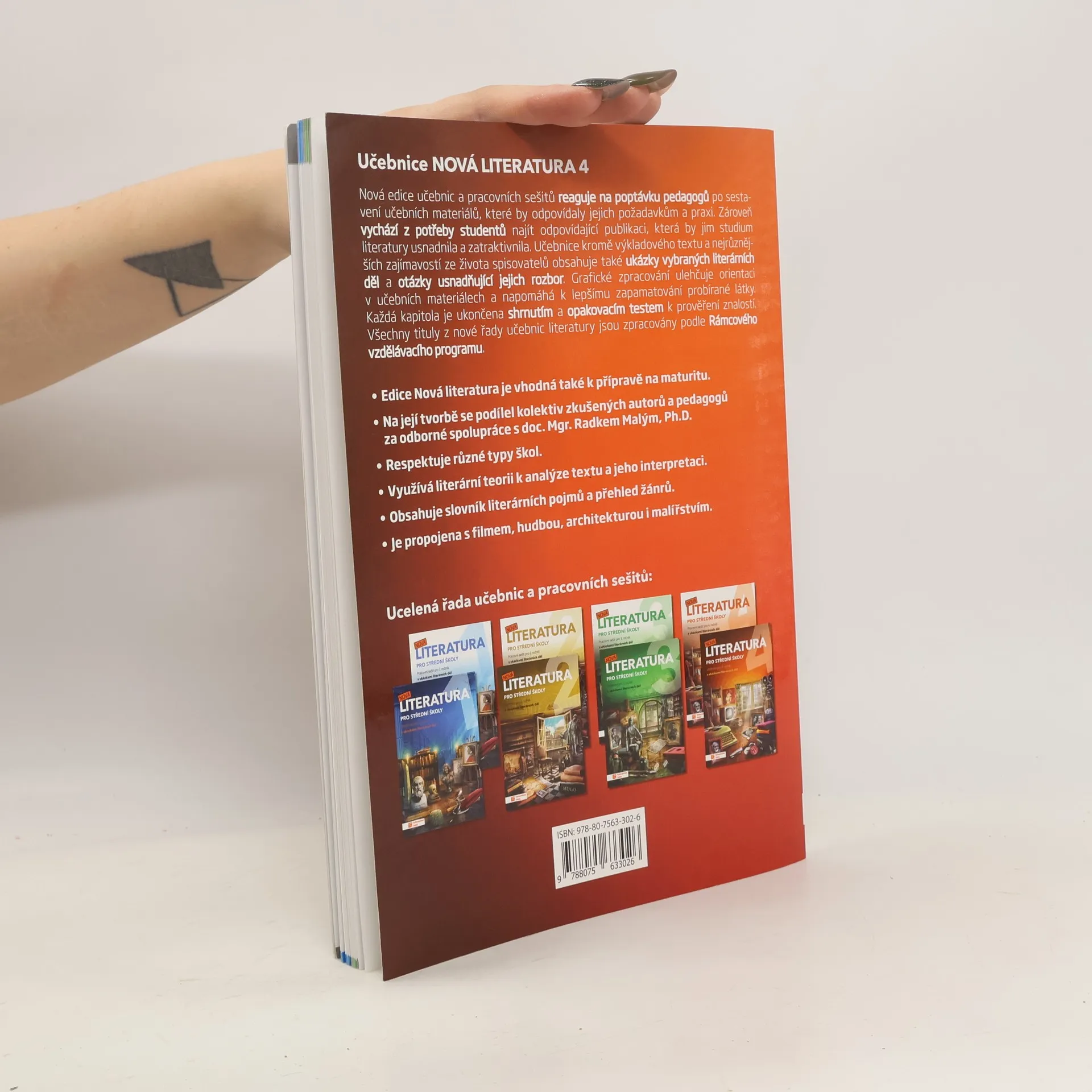 Učebnice kromě výkladového textu a nejrůznějších zajímavostí ze života spisovatelů obsahuje také ukázky vybraných literárních děl a otázky usnadnující jejich rozbor. Grafické zpracování ulehčuje orientaci v učebních materiálech a napomáhá lepšímu zapamatování probírané látky. Každá kapitola je ukončena shrnutím a opakovacím testem k prověření znalostí. Nová edice učebnic a pracovních sešitů reaguje na poptávku pedagogů po sestavení učebních materiálů, které by odpovídaly jejich požadavkům a praxi. Zároveň vychází z potřeby studentů najít odpovídající publikaci, která by jim studium literatury usnadnila a zatraktivnila.