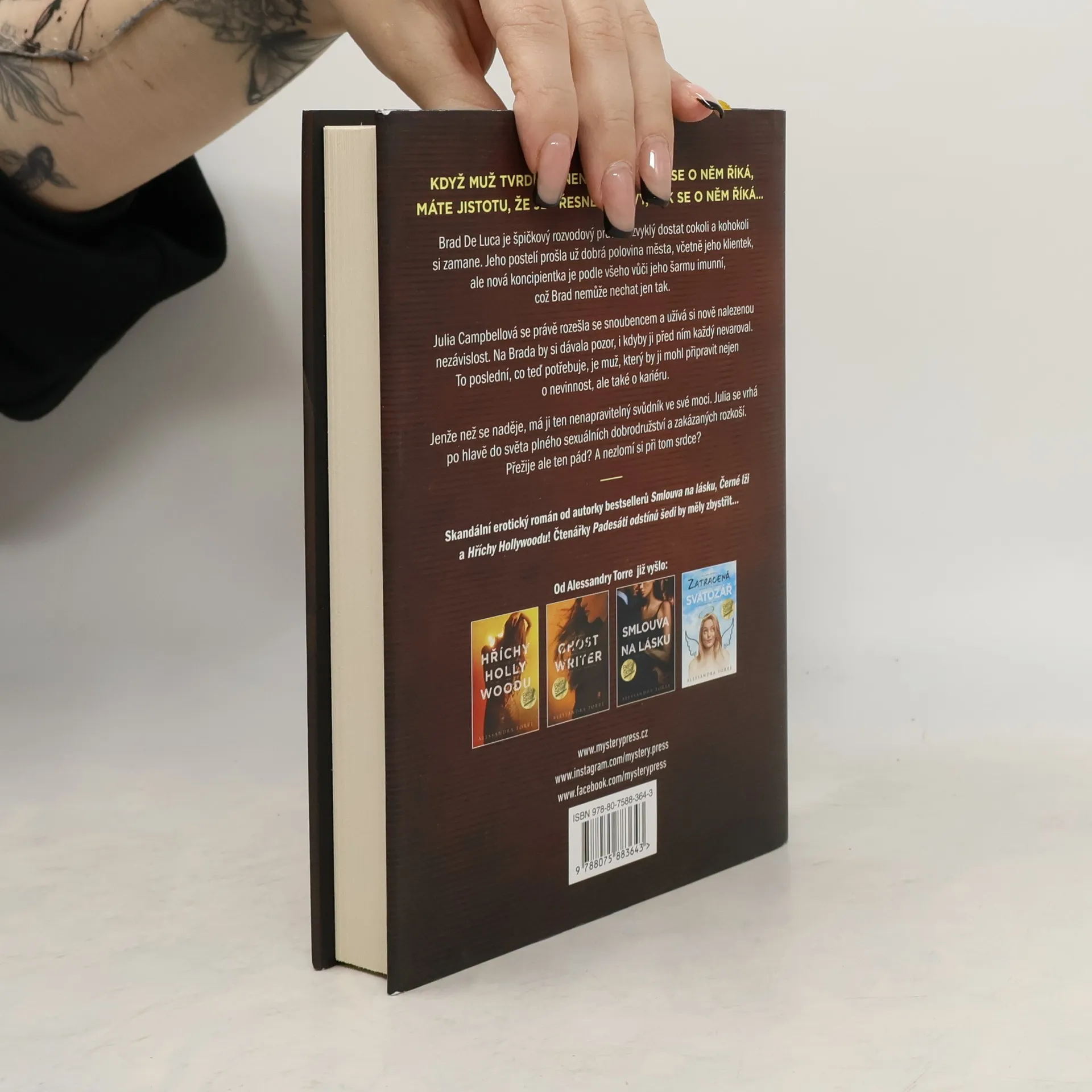 KDYŽ MUŽ TVRDÍ, ŽE NENÍ TAKOVÝ, JAK SE O NĚM ŘÍKÁ, MÁTE JISTOTU, ŽE JE PŘESNĚ TAKOVÝ, JAK SE O NĚM ŘÍKÁ… Brad De Luca je špičkový rozvodový právník, zvyklý dostat cokoli a kohokoli si zamane. Jeho postelí prošla už dobrá polovina města, včetně jeho klientek, ale nová koncipientka je podle všeho vůči jeho šarmu imunní, což Brad nemůže nechat jen tak. Julia Campbellová se právě rozešla se snoubencem a užívá si nově nalezenou nezávislost. Na Brada by si dávala pozor, i kdyby ji před ním každý nevaroval. To poslední, co teď potřebuje, je muž, který by ji mohl připravit nejen o nevinnost, ale také o kariéru. Jenže než se naděje, má ji ten nenapravitelný svůdník ve své moci. Julia se vrhá po hlavě do světa plného sexuálních dobrodružství a zakázaných rozkoší. Přežije ale ten pád? A nezlomí si při tom srdce? ___ Skandální erotický román od autorky bestsellerů Smlouva na lásku, Černé lži a Hříchy Hollywoodu! Čtenářky Padesáti odstínů šedi by měly zbystřit…