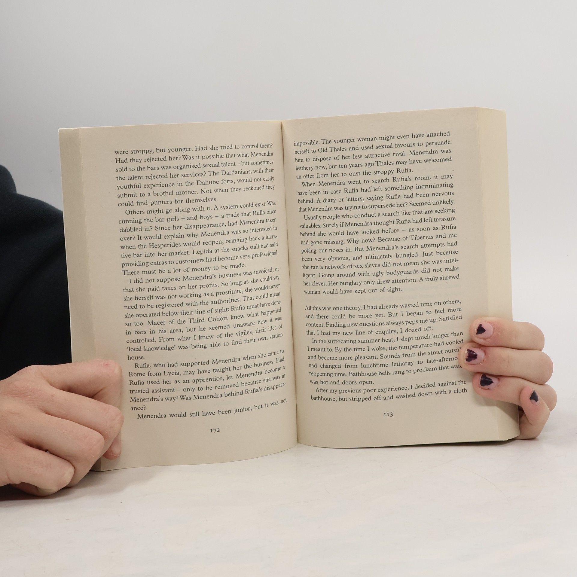 Life is sweet for Flavia Albia and her soon-to-be husband Faustus. But his new job as a building contractor runs into a problem: At the Garden of the Hesperides a barmaid went missing years before; now the workmen start unearthing her bones. Albia takes on the task of finding out what happened. Five more skeletons are discovered. Despite the fact that nobody seems to know or care who died, violent attempts are made to stop her enquiries. Soon Albia is exploring the world of Roman streetlife, where bars are brothels, workers lead brutal lives, foreigners are muscling in on the gambling syndicates, and extortion is commonplace. What's more there's little time to solve the mystery before the wedding day when Albia is expected to show Rome that her affair with Manlius is a much more than a casual fling. The gods, however, have other ideas...