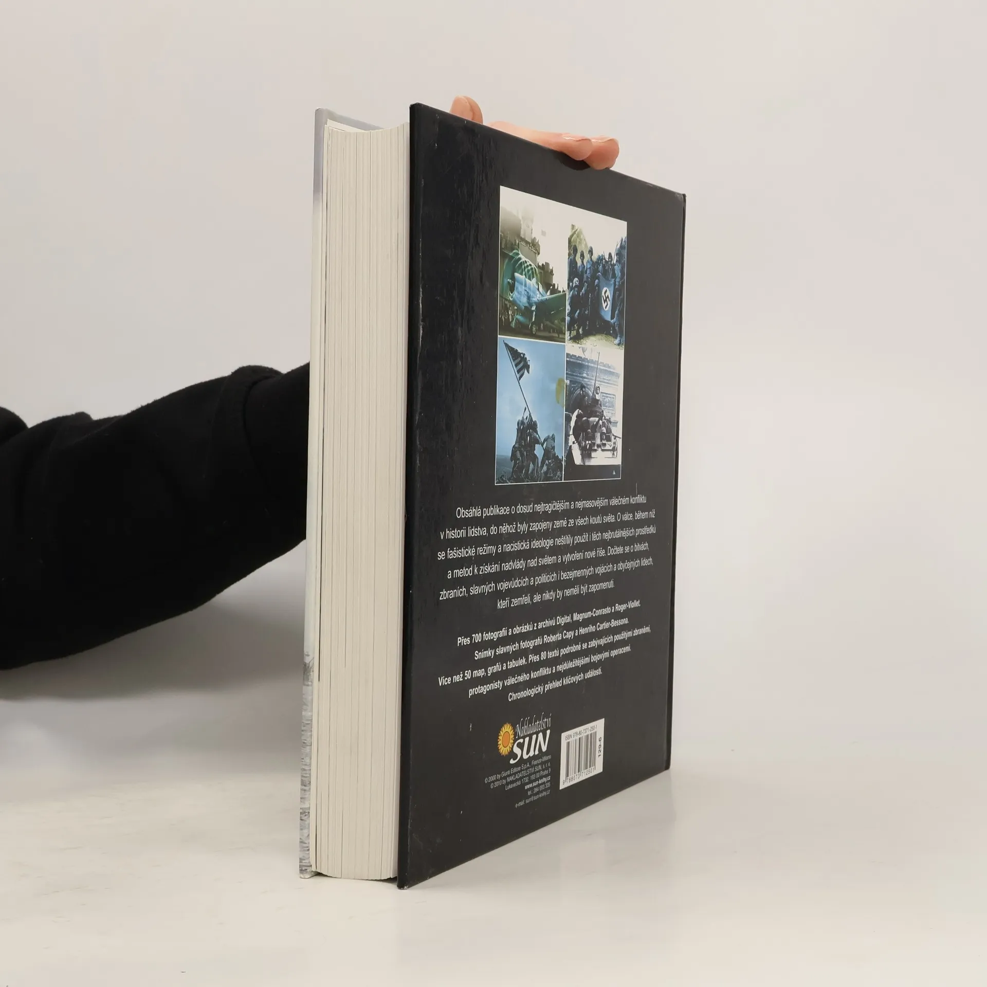 Obsáhlá publikace o dosud nejtragičtějším a nejmasovějším válečném konfliktu v historii lidstva, do něhož byly zapojeny země ze všech koutů světa. O válce, během níž se fašistické režimy a nacisticka ideologie neštítily použít i těch nejbrutálnějších prostředků a metod k získání nadvlády nad světem a vytvoření nové říše. Dočtete se o bitvách, zbraních, slavných vojevůdcích a politicích i bezejmenných vojácích a obyčejných lidech, kteří zemřeli, ale nikdy by neměli být zapomenuti. Přes 700 fotografií a obrázků z archivů Digital, Magnum-Conrasto a Roger-Viollet. Snímky slavnych fotografů Roberta Capy a Henriho Cartier-Bessona. Více než 50 map, grafů a tabulek. Přes 80 textů podrobně se zabývajících použitými zbraněmi, protagonisty válečného konfliktu a nejdůležitějšími bojovými operacemi. Chronologický přehled kličových událostí.