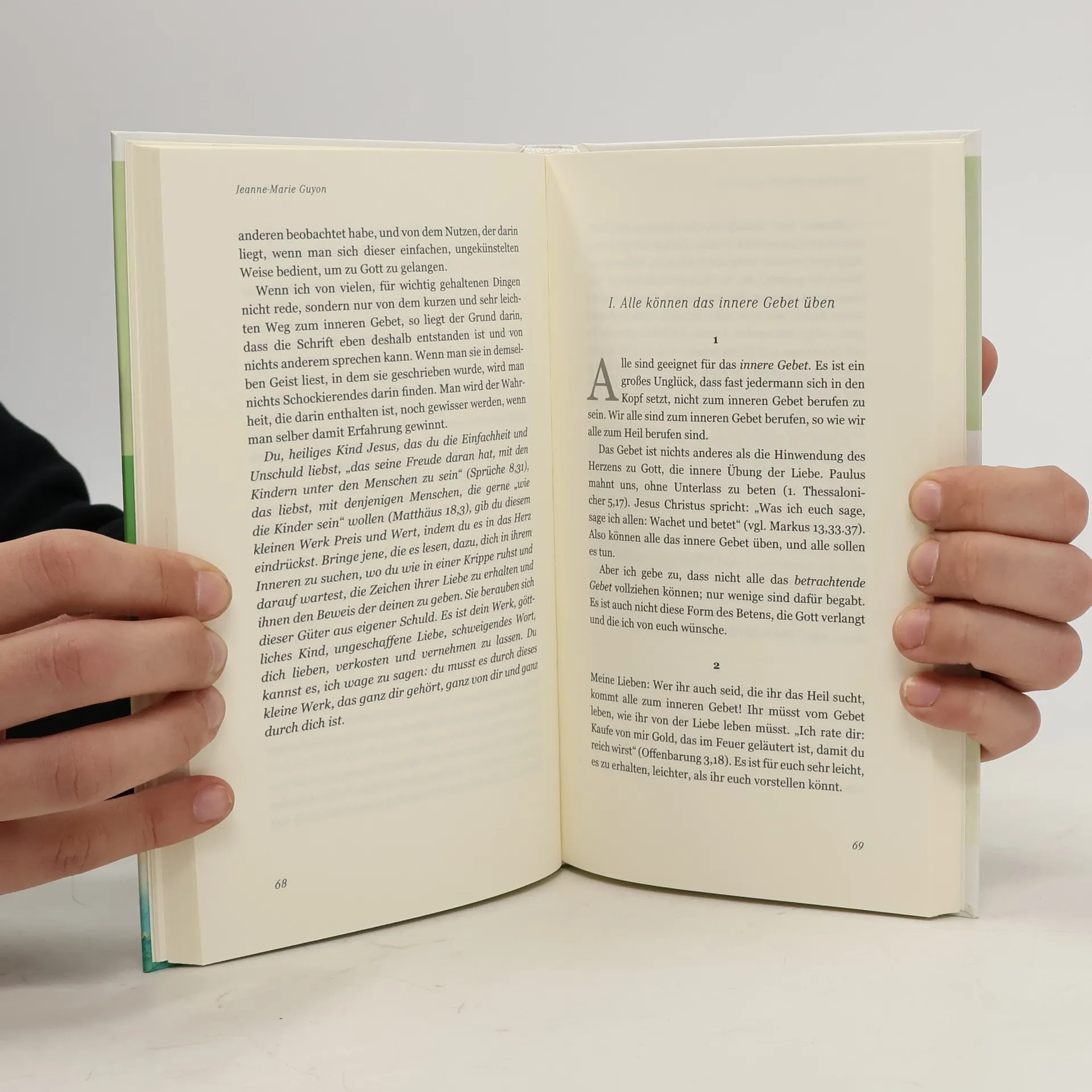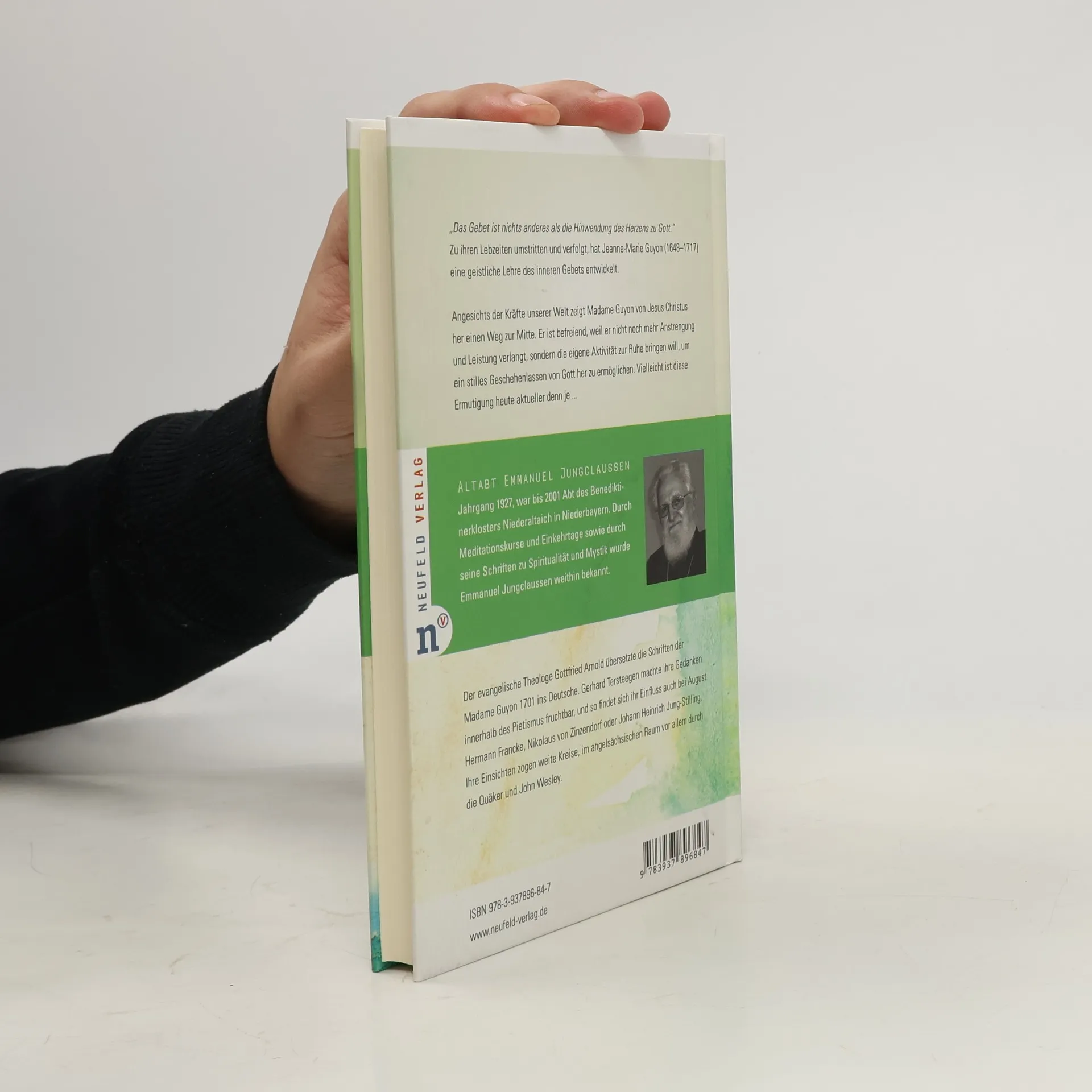 Zu ihren Lebzeiten umstritten und verfolgt, hat Jeanne-Marie Guyon (1648–1717) eine geistliche Lehre des inneren Gebets entwickelt. Angesichts der Kräfte unserer Welt zeigt Madame Guyon von Jesus Christus her einen Weg zur Mitte, der befreiend ist, weil er nicht noch mehr Anstrengung und Leistung verlangt, sondern die eigene Aktivität zur Ruhe bringen will, um ein stilles Geschehenlassen von Gott her zu ermöglichen. Vielleicht ist diese Ermutigung heute aktueller denn je. Der evangelische Theologe Gottfried Arnold übersetzte ihre Schriften 1701 ins Deutsche. Gerhard Tersteegen machte ihre Gedanken innerhalb des Pietismus fruchtbar, und so findet sich ihr Einfluss auch bei August Hermann Francke, Nikolaus von Zinzendorf oder Johann Heinrich Jung-Stilling. Später schrieb z. B. Hedwig von Redern über Madame Guyon. Ihre Einsichten zogen weite Kreise, im angelsächsischen Raum vor allem durch die Quäker und John Wesley.