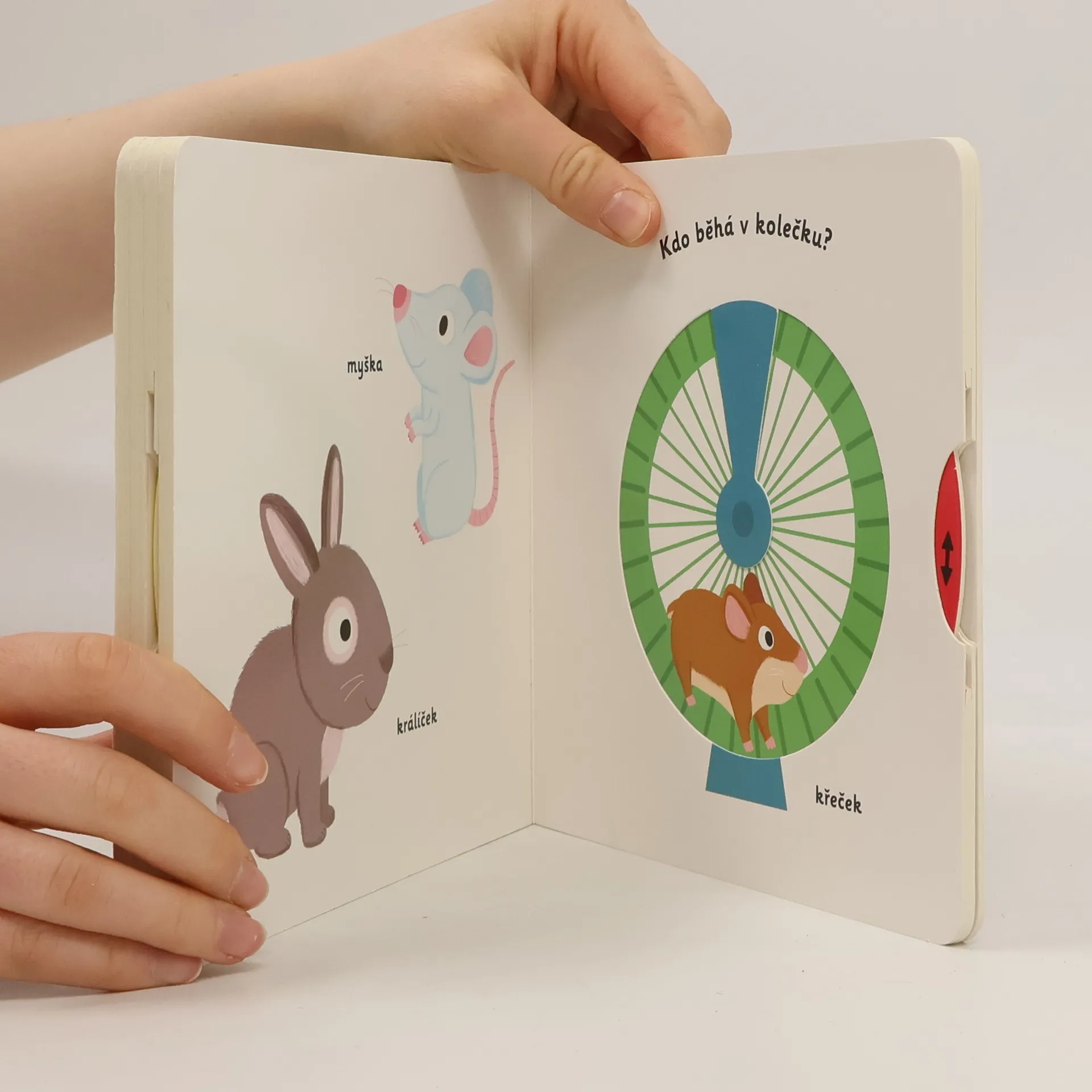 Objevovat svět zvířátek a domácích mazlíčků je s tímto leporelem tak zábavné! Kdo si hraje s klubíčkem vlny? Kdo žije v tomto akváriu? Kdo si hraje v psí boudě? Kdo běhá v kolečku? Pojmenuj zvířátka a ukaž, které máš nejraději! Stačí jen vložit prstík do správného otvoru, lehce posunout nebo otočit ve směru šipky a hned bude váš malý objevitel nebo objevitelka znát odpovědi. Leporelo je určeno pro nejmenší děti od jednoho roku a má pevné stránky s posuvnými prvky, a tak si naši nejmenší mohou při prohlížení a pojmenovávání procvičit i jemnou motoriku.