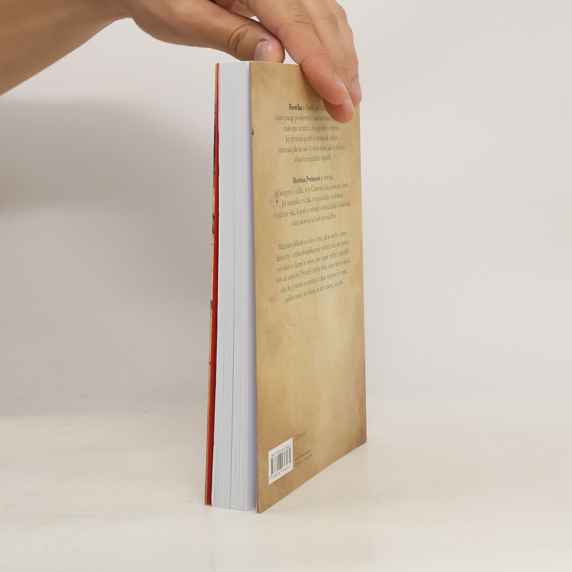 Ste hérečka?! A kerá? Herečka je člověk jako každý jiný. I když pracuje po večerech v bizarním kostýmu s vrstvou make-upu na tváři a občas ji vidíte v televizi. Její pyramida potřeb je zrovna tak obtížně zdolatelná jako ta vaše. A občas stejně jako vy klopýtá už na těch nejnižších stupních. Martina Preissová je herečka. Její kolegyně o ní říká, že je Catherine Zeta Jones pro chudý. Její maminka o ní říká, že se narodila s potleskem. A její bratr jí říká, že jestli se v televizi v osm nebude křížit s Doktorem z hor, tak se na ni bude možná dívat. Martininy příhody a úvahy o tom, jak se smířit s časem, drobnými i většími komplikacemi všedních dní, své profese, své rodiny, a vlastně se sebou, jsou vtipné, něžné i nahořklé, vždy ale úsměvné. Protože i kdyby třeba občas nebylo veselo, vždycky je možné podívat se z okna, zazpívat si v autě, políbit muže, ale hlavně se brát takoví, jací jste.