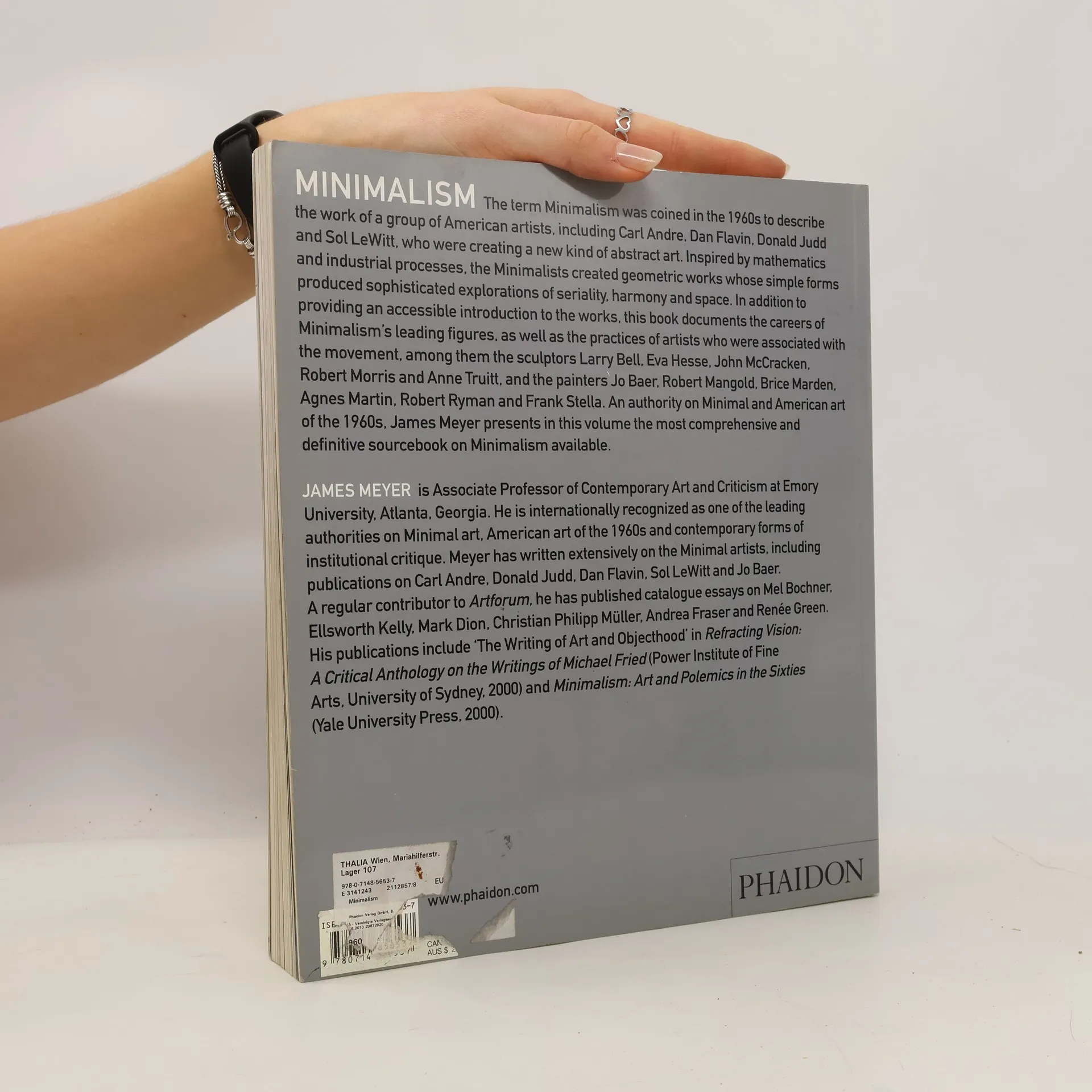 Minimalism offers the first straightforward and useful summary of the output and outlook of the artists associated with minimalism in its heyday, as well as its subsequent development into more nuanced visual forms and its relationship to postmodernism. Editor James Meyer is a specialist who has written extensively on Carl Andre, Donald Judd, Dan Flavin, and Sol LeWitt, four of the seminal minimalists (the fifth is Robert Morris). Despite the intellectual thorniness of this art, Meyer avoids the turgidity that marks much of the writing associated with it. Tracing the origins of minimalism primarily to Frank Stella's "Black Paintings" of 1959, Meyer outlines the shifting, often warring definitions of this new kind of art. Once sculptors Andre and Judd had made their mark, there was doubt that painters could be minimalists. Brice Marden and Robert Ryman made the cut because their work was believed to be purely about the process of painting. Interestingly, although this was overwhelmingly a male club, curators also initially embraced the work of several women artists (including Agnes Martin and Anne Truitt) who retained such minimalist no-noes as irregular, handmade marks, color that could be perceived independently of form, and a belief in transcendent meaning.