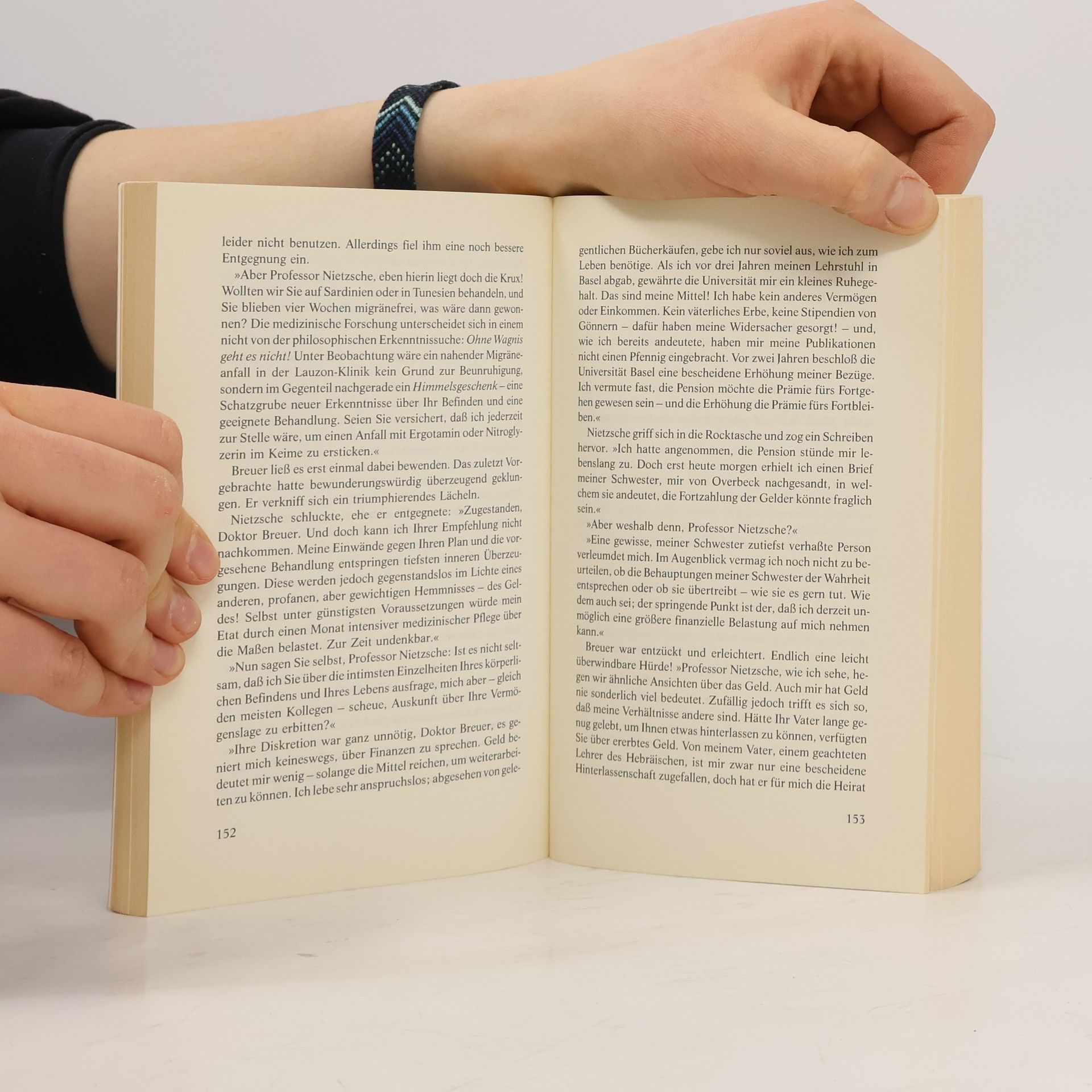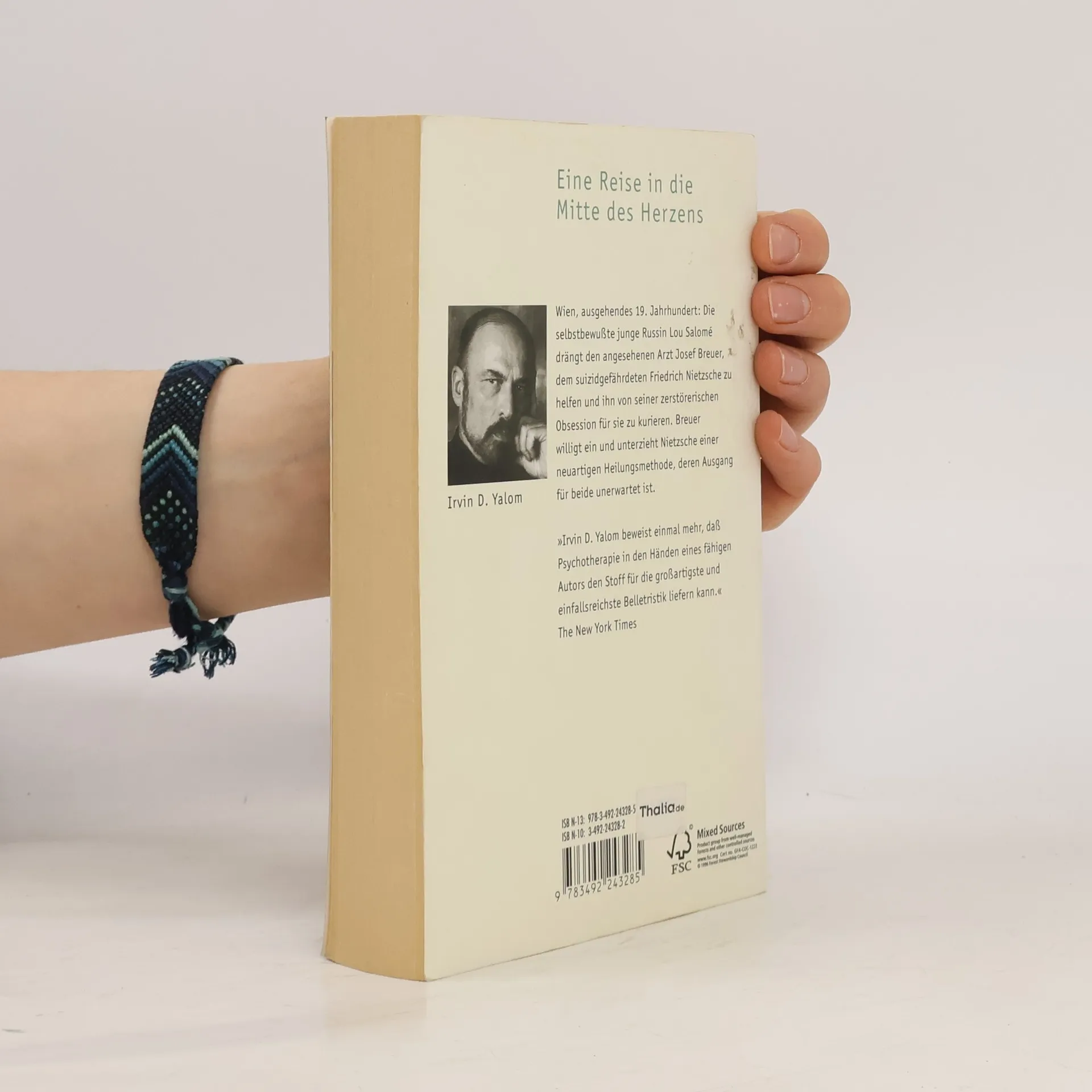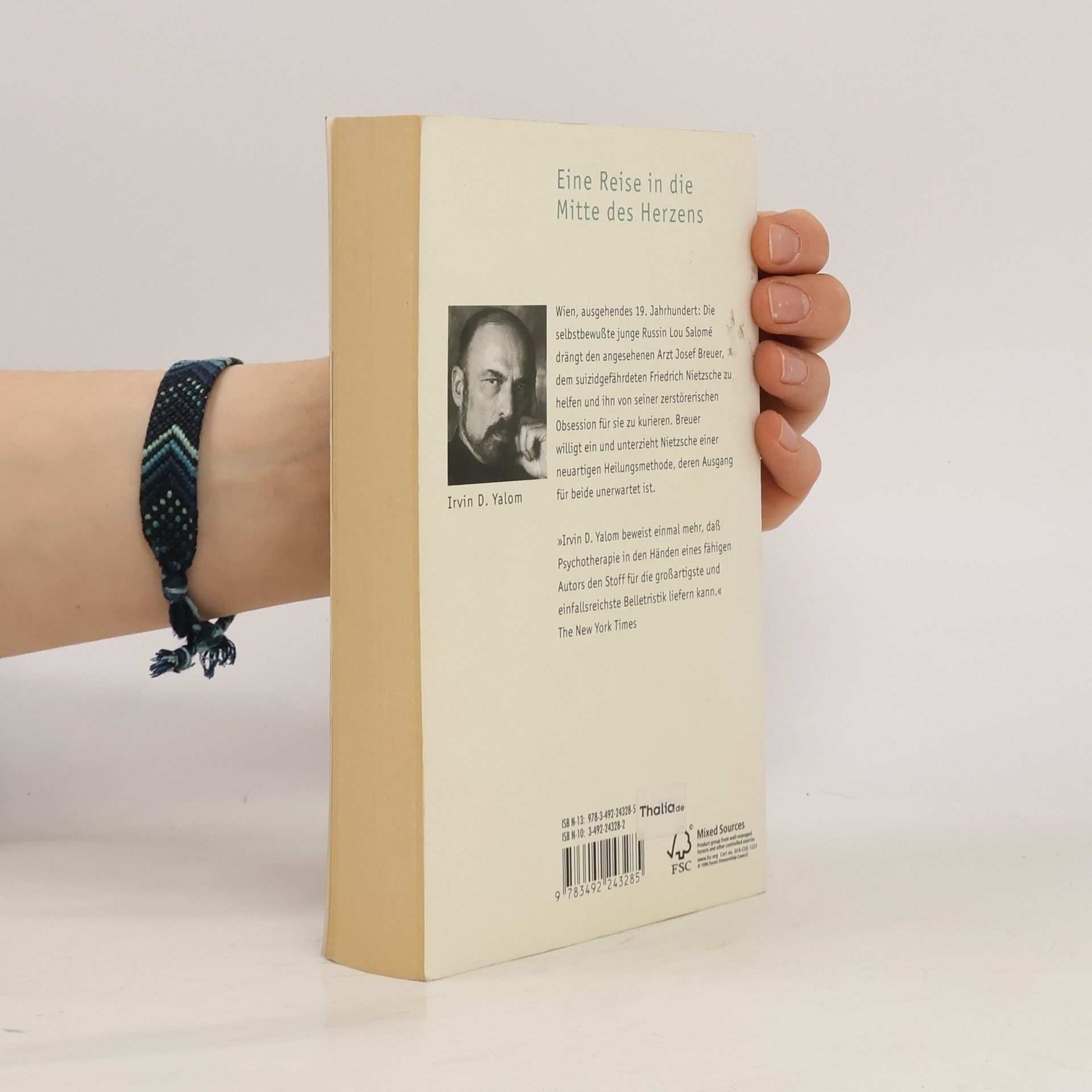 Wien, ausgehendes 19. Jahrhundert: Die selbstbewußte junge Russin Lou Salomé drängt den angesehenen Arzt Josef Breuer, dem suizidgefährdeten Friedrich Nietzsche zu helfen und ihn von seiner zerstörerischen Obsession für sie zu kurieren. Breuer willigt ein und unterzieht Nietzsche einer neuartigen Heilungsmethode, deren Ausgang für beide unerwartet ist. 'Irvin D. Yalom beweist einmal mehr, daß Psychotherapie in den Händen eines fähigen Autors den Stoff für die großartigste und einfallsreichste Belletristik liefern kann.' The New York Times