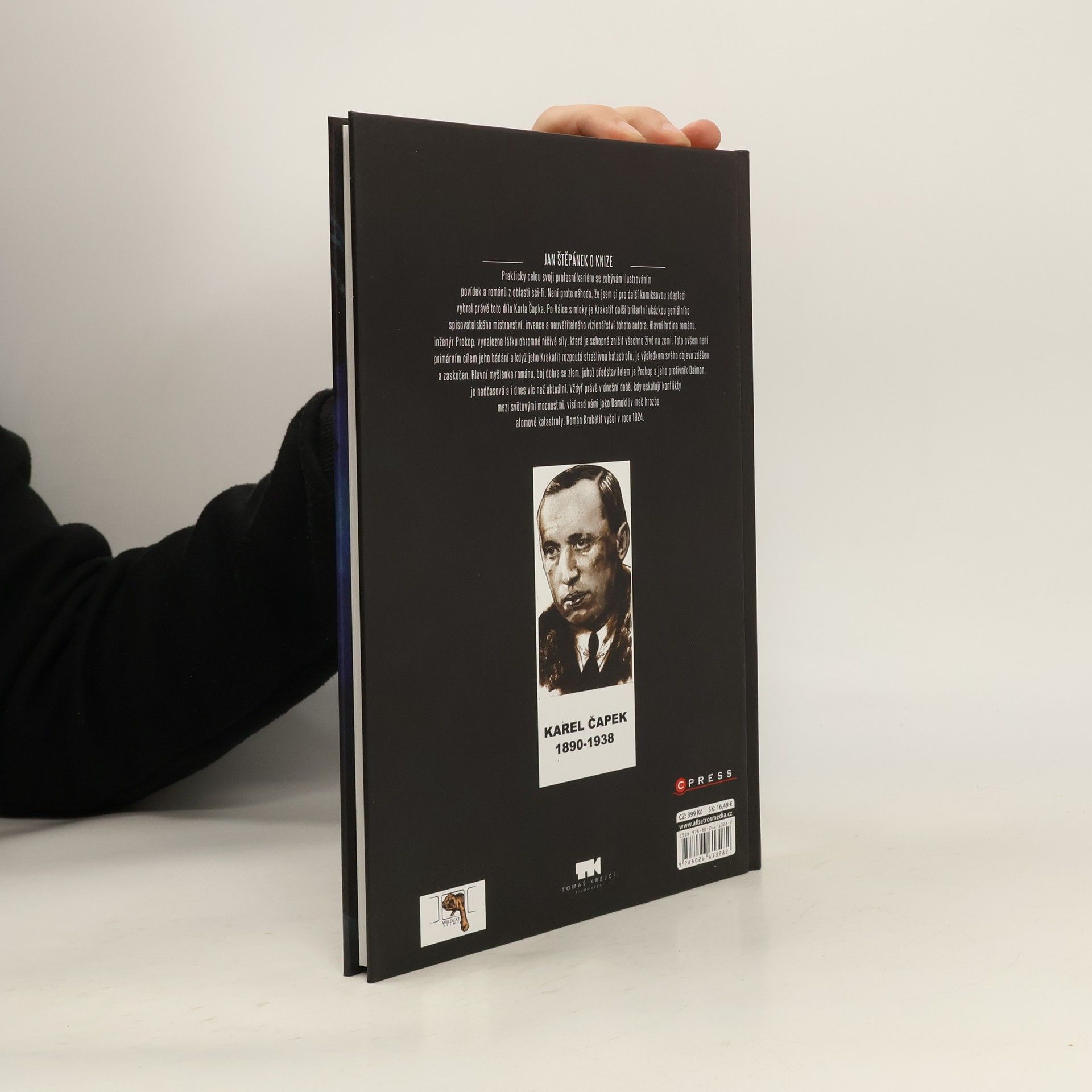 Prakticky celou svoji profesní kariéru se zabývám ilustrováním povídek a románů z oblasti sci-fi. Není proto náhoda, že jsem si pro další komiksovou adaptaci vybral právě toto dílo Karla Čapka. Po Válce s mloky je Krakatit další brilantní ukázkou geniálního spisovatelského mistrovství, invence a neuvěřitelného vizionářství tohoto autora. Hlavní hrdina románu, inženýr Prokop,vynalezne látku ohromné ničivé síly, která je schopna zničit všechno živé na zemi. Toto ovšem není primárním cílem jeho bádání a když jeho Krakatit rozpoutá strašlivou katastrofu, je výsledkem svého objevu zděšen a zaskočen. Hlavní myšlenka románu, boj dobra se zlem, jehož představitelem je Prokop a jeho protivník Daimon, je nadčasová a i dnes víc než aktuální.Vždyť právě v dnešní době, kdy eskalují konflikty mezi světovými mocnostmi, visí nad námi jako Damoklův meč hrozba atomové katastrofy. Román Krakatit vyšel v roce 1924.