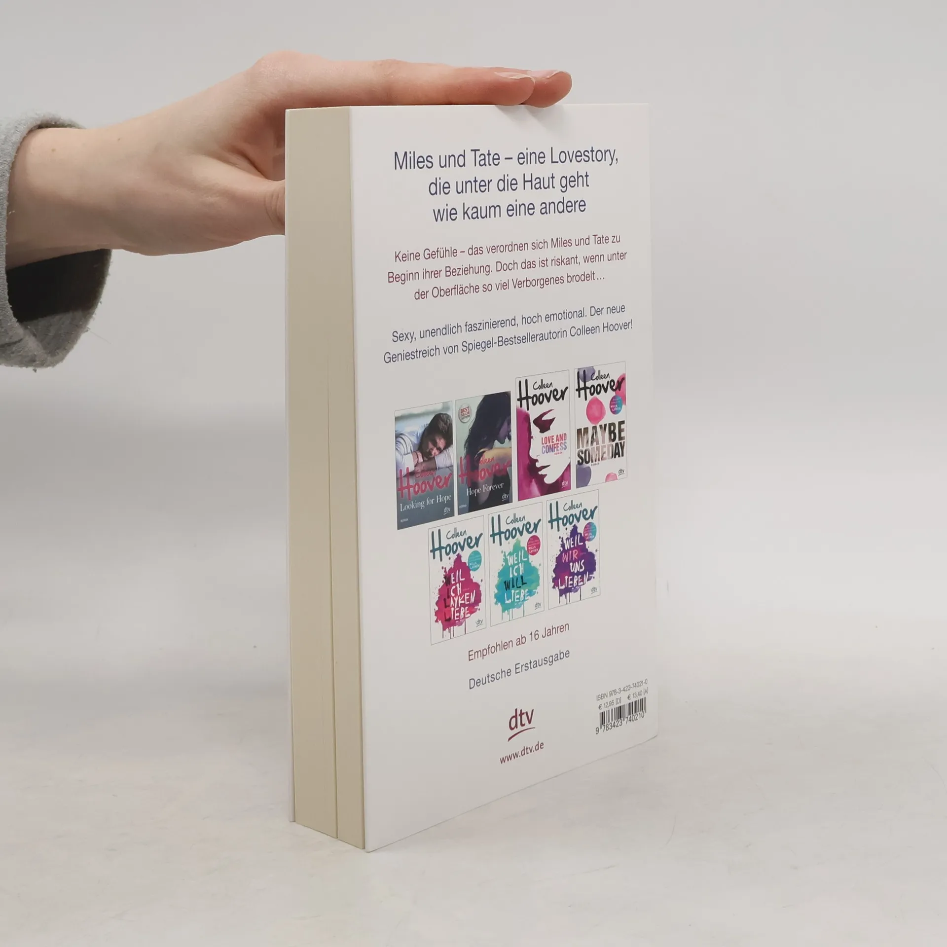 Zurück ins Leben lieben – der neue Geniestreich von Colleen Hoover  Als Tate zum Studium nach San Francisco zieht, stolpert sie dort gleich am ersten Abend über Miles Archer: Miles, der Freund ihres Bruders, der niemals lächelt, meistens schweigt und offensichtlich eine schwere Bürde mit sich herumträgt. Miles, der so attraktiv ist, dass Tate bei seinem Anblick Herzflattern und weiche Knie bekommt. Miles, der, wie er selbst zugibt, seit sechs Jahren keine Frau mehr geküsst hat. Miles, von dem Tate sich besser fernhalten sollte, wenn ihr ihr Gefühlsleben lieb ist …