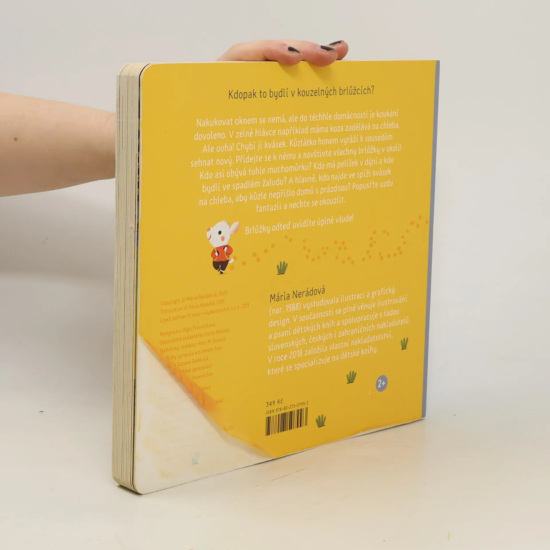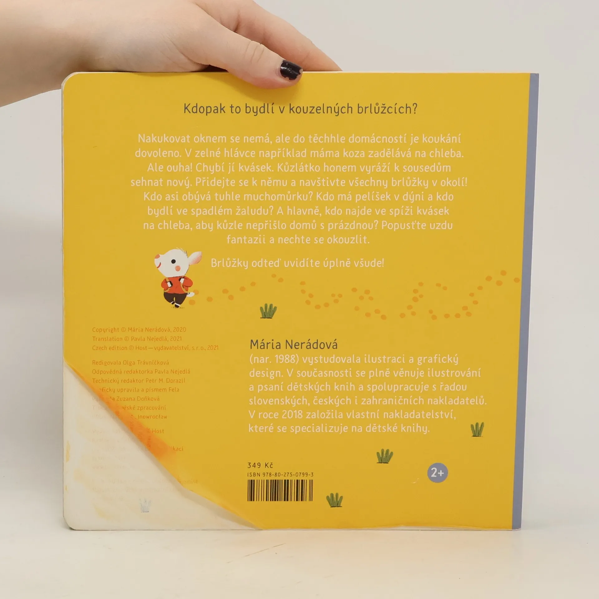 Kdopak to bydlí v kouzelných brlůžcích? Nakukovat oknem se nemá, ale do těchhle domácností je koukání dovoleno. V zelné hlávce například máma koza zadělává na chleba. Ale ouha! Chybí jí kvásek. Kůzlátko honem vyráží k sousedům sehnat nový. Přidejte se k němu a navštivte všechny brlůžky v okolí! Kdo asi obývá tuhle muchomůrku? Kdo má pelíšek v dýni a kdo bydlí ve spadlém žaludu? A hlavně, kdo najde ve spíži kvásek na chleba, aby kůzle nepřišlo domů s prázdnou? Popusťte uzdu fantazii a nechte se okouzlit. Brlůžky odteď uvidíte úplně všude!