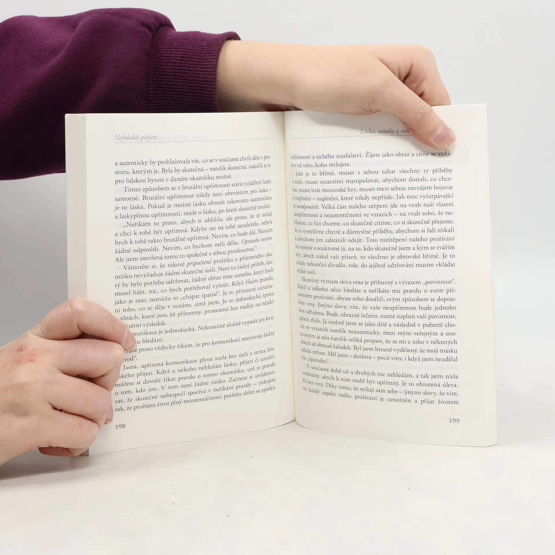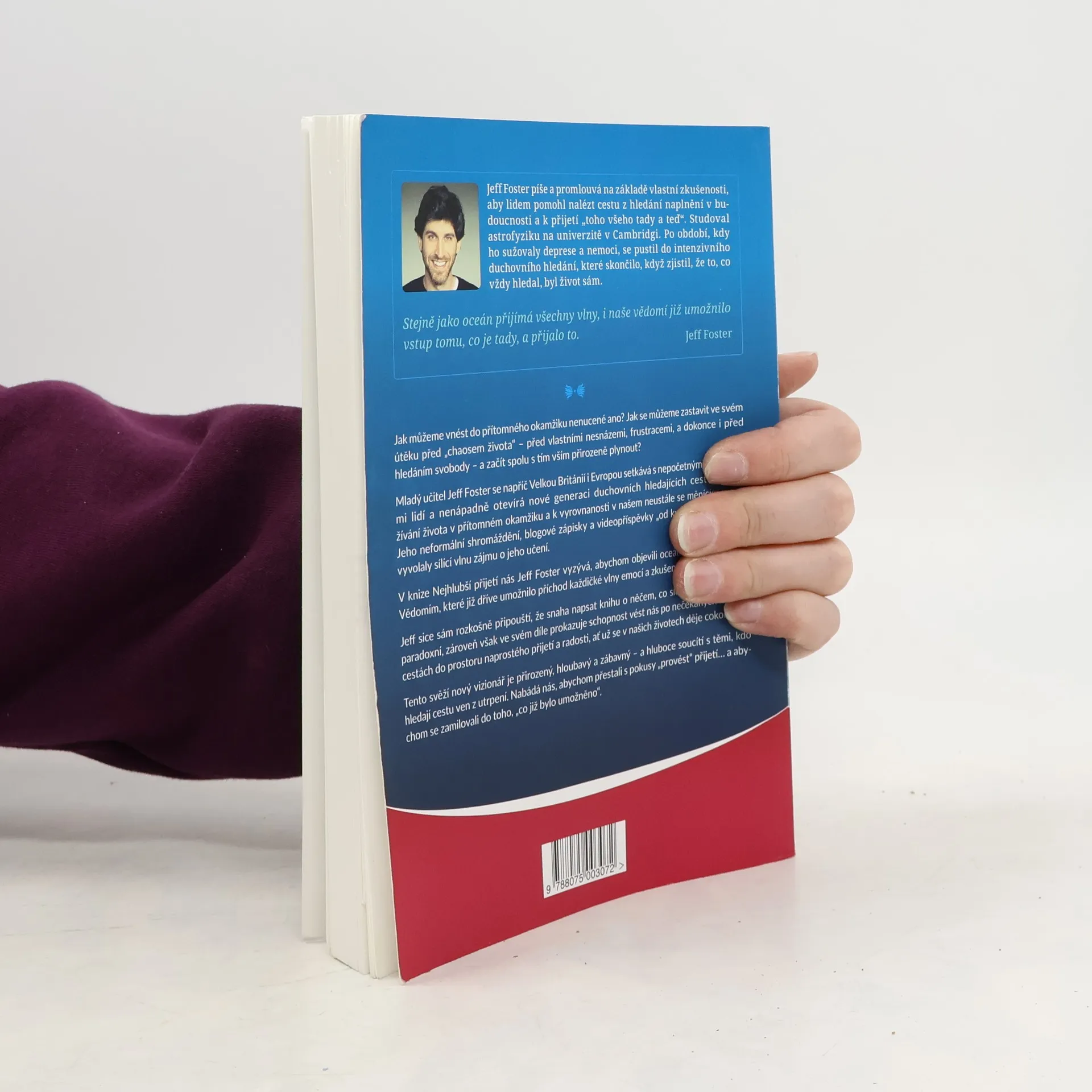 Jak můžeme vnést do přítomného okamžiku nenucené ano? Jak se můžeme zastavit ve svém útěku před „chaosem života“ – před vlastními nesnázemi, frustracemi, a dokonce i před hledáním svobody – a začít spolu s tím vším přirozeně plynout? Mladý učitel Jeff Foster se napříč Velkou Británií i Evropou setkává s nepočetnými skupinkami lidí a nenápadně otevírá nové generaci duchovních hledajících cestu k prožívání života v přítomném okamžiku a k vyrovnanosti v našem neustále se měnícím světě. Jeho neformální shromáždění, blogové zápisky a videopříspěvky „od kuchyňského stolu“ vyvolaly sílící vlnu zájmu o jeho učení. V knize Nejhlubší přijetí nás Jeff Foster vyzývá, abychom objevili oceán toho, kým jsme: Vědomím, které již dříve umožnilo příchod každičké vlny emocí a zkušeností. Jeff sice sám rozkošně připouští, že snaha napsat knihu o něčem, co slovy nelze sdělit, je paradoxní, zároveň však ve svém díle prokazuje schopnost vést nás po nečekaných nových cestách do prostoru naprostého přijetí a radosti, ať už se v našich životech děje cokoliv. Tento svěží nový vizionář je přirozený, hloubavý a zábavný – a hluboce soucítí s těmi, kdo hledají cestu ven z utrpení. Nabádá nás, abychom přestali s pokusy „provést“ přijetí… a abychom se zamilovali do toho, „co již bylo umožněno“.