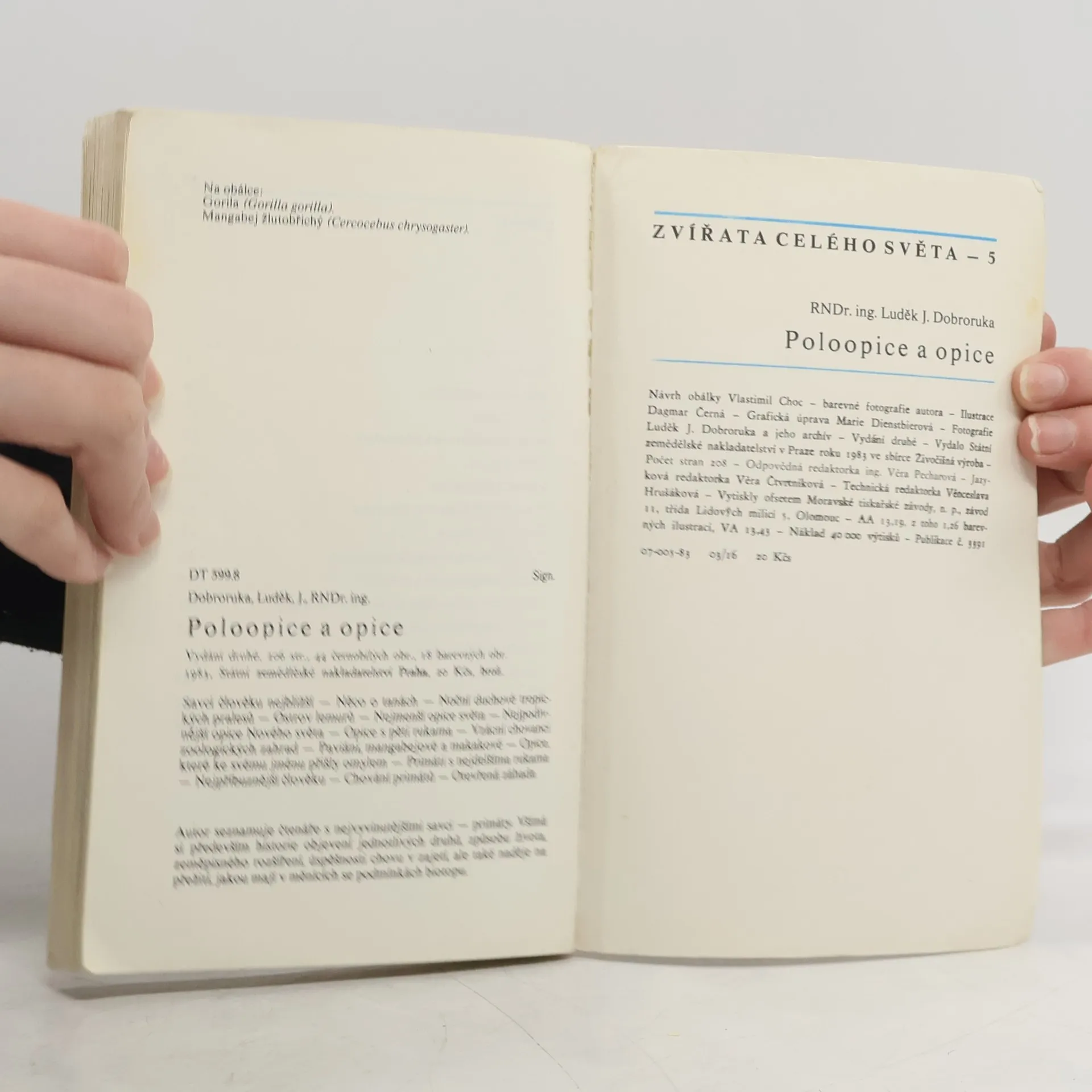 Skladom máme celkom knihy Zvířata celého světa 5. Opice a poloopice (1983).