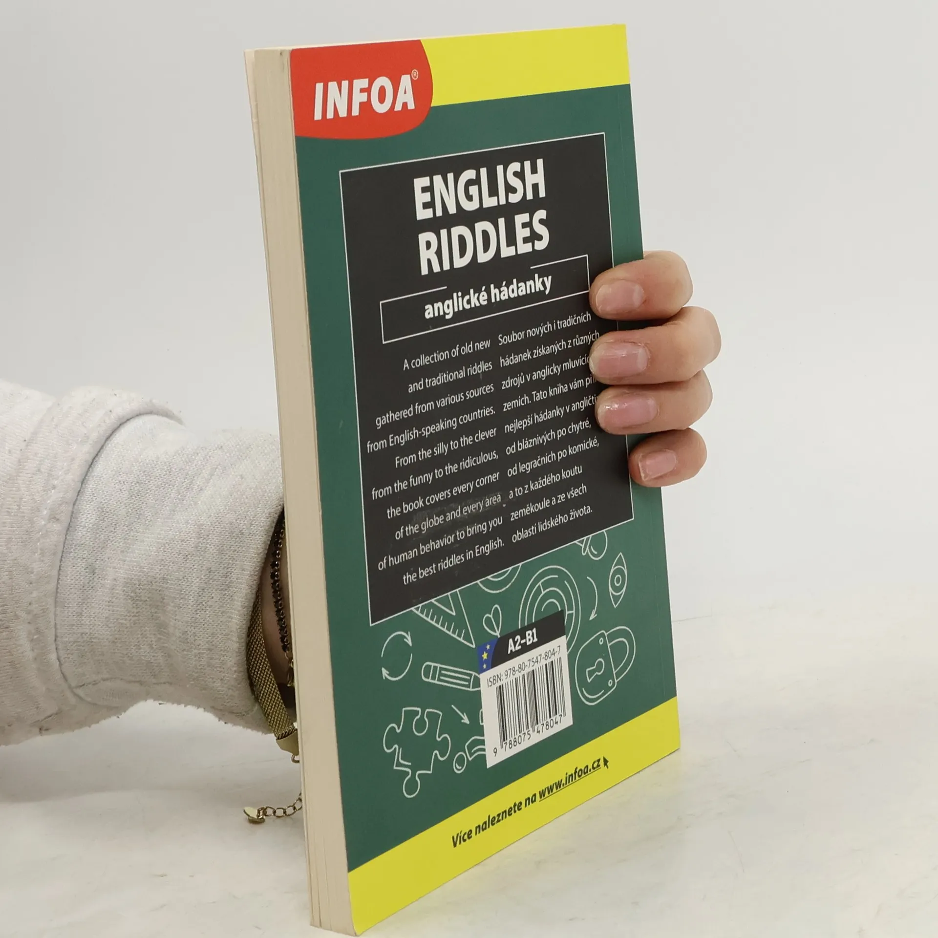 Soubor nových i tradičních hádanek původem z anglicky mluvících zemí. Zrcadlový anglicko-český text. Jazyková úroveň A2-B1.