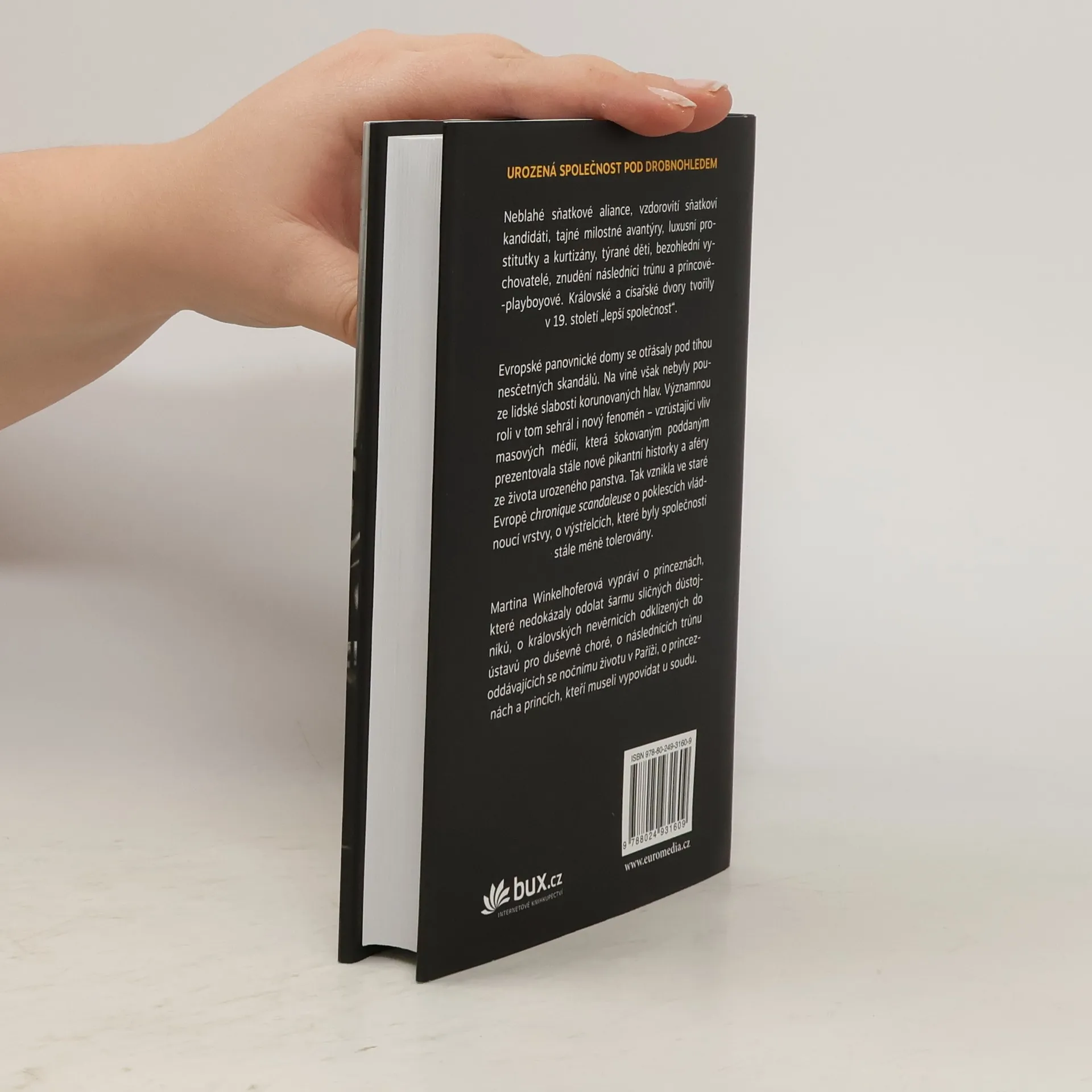Martina Winkelhoferová, specialistka na dějiny 19. století se zaměřením na společenský vývoj středoevropských šlechtických rodů, osvětluje trhliny ve fasádě životního stylu tzv. „lepší společnosti“, které dokázal už tenkrát nemilosrdně odhalovat sebevědomý tisk. Na veřejnost se stále častěji dostávaly informace o sadistických vychovatelích, královských kurtizánách, marnotratných následnících trůnu a rebelujících princeznách, které se odmítaly podřídit sňatkové politice. Výsledkem byly skandály, které otřásaly samotnými základy evropských vládnoucích dynastií.