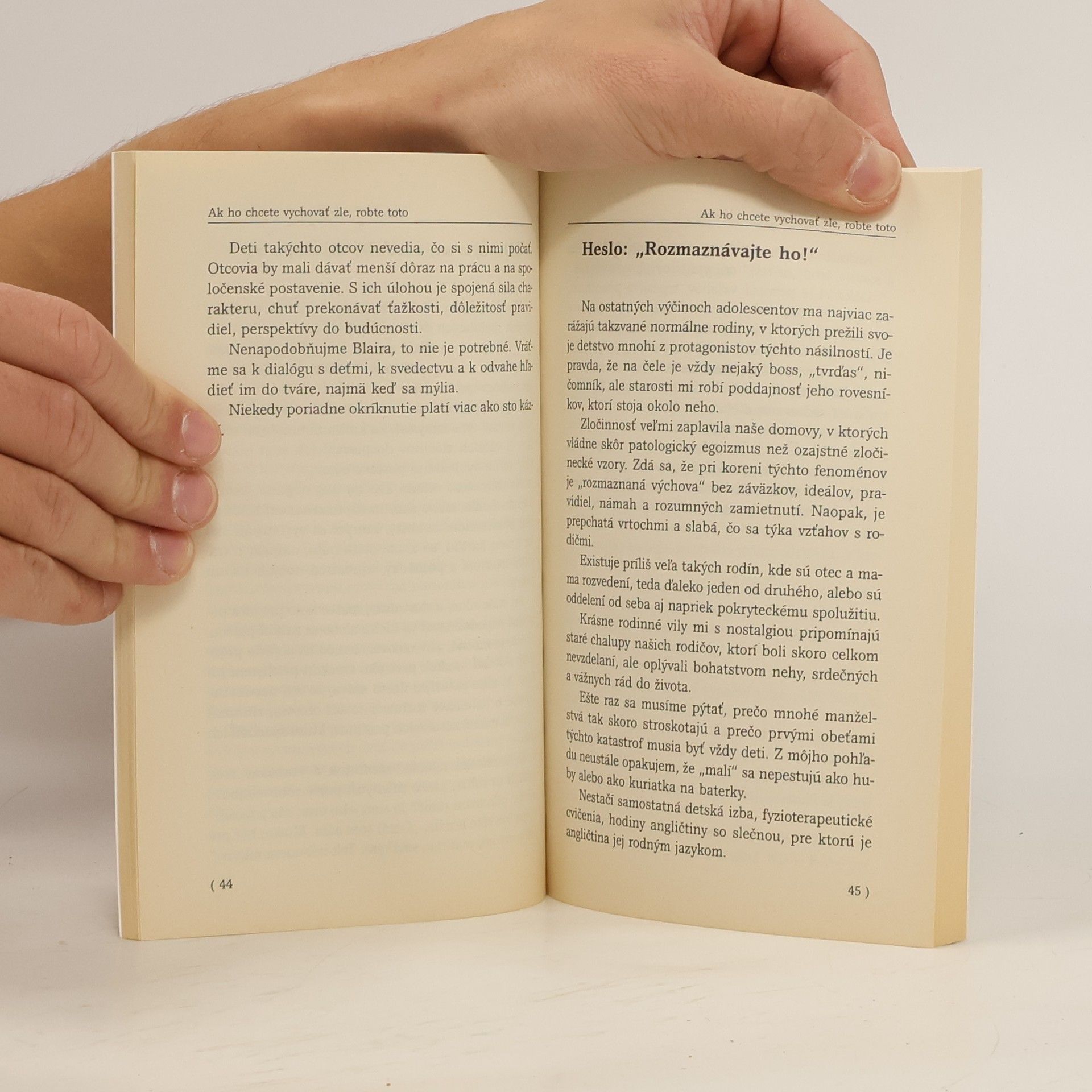 V tejto knihe sa autor skutočne originálnym, ľahkým a nenúteným štýlom obracia na rodičov a na vzdory súčasnému primátu kariéry a konzumizmu vracia výchove jej nenahraditeľné miesto. V prvej časti čitateľa zaujmú naruby obrátené zásady, ako si zle vychovať dieťa, ktorými autor veľmi trefne a pravdivo odhaľuje výchovné chyby. Druhá časť sa zasa zaoberá konkrétnymi radami pre dobrú výchovu.