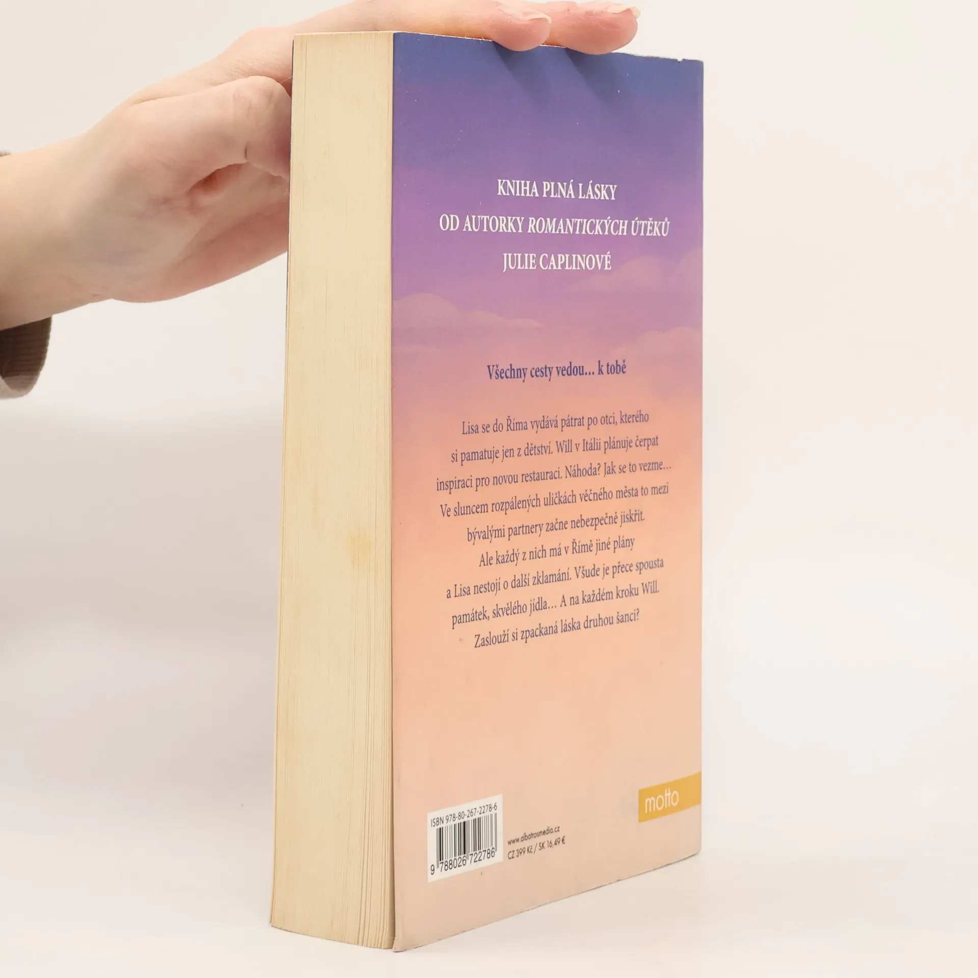 Všechny cesty vedou... k tobě. Lisa se do Říma vydává pátrat po otci, kterého si pamatuje jen z dětství. Will v Itálii plánuje čerpat inspiraci pro novou restauraci. Náhoda? Jak se to vezme... Ve sluncem rozpálených uličkách věčného města to mezi bývalými partnery začne nebezpečně jiskřit. Ale každý z nich má přece v Římě jiné plány a Lisa nestojí o další zklamání. Všude je přece spousta památek, skvělého jídla... A na každém kroku Will. Zaslouží si zpackaná láska druhou šanci?