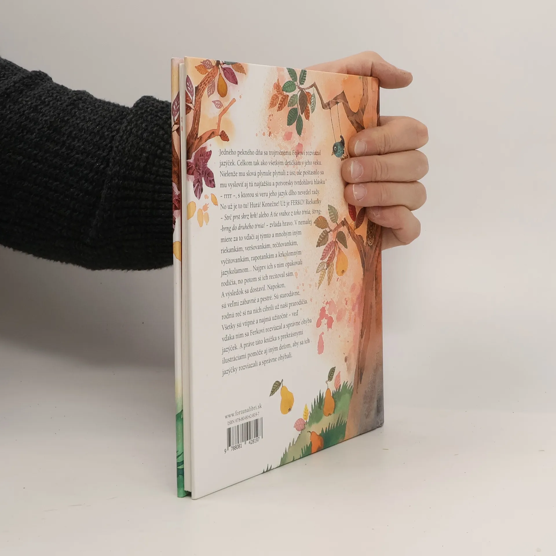 Jedného pekného dňa sa trojročnému Fejkovi rozviazal jazýček. Celkom tak ako všetkým detičkám v jeho veku. Nielenže mu slová plynule plynuli z úst, ale pošťastilo sa mu vysloviť aj tú najťažšiu a potvorsky tvrdohlavú hlásku – rrr – a s tou si veru jeho jazyk dlho nevedel rady. No už je to tu! Hurá! Konečne! Už je FERKO! Riekanky – Strč prst skrz krk! alebo A tie vrabce z toho tŕnia, štrng-brng do druhého tŕnia! – zvláda hravo. V nemalej miere za to vďačí aj týmto a mnohým iným riekankám, veršovankám, rečňovankám, vyčitovankám, rapotankám a krkolomným jazykolamom...Najprv ich s ním opakovali rodičia, no potom si ich recitoval sám. A výsledok sa dostavil. Napokon, sú veľmi zábavné a pestré, prepestré. Sú starodávne, rodnú reč si na nich cibrili už naši pra-prarodičia. Všetky sú vtipné a najmä užitočné – veď vďaka nim sa Ferkovi rozviazal a správne ohýba jazýček. A práve táto knižka s prekrásnymi ilustráciami pomôže aj iným deťom, aby sa ich jazýčky rozviazali a správne ohýbali.