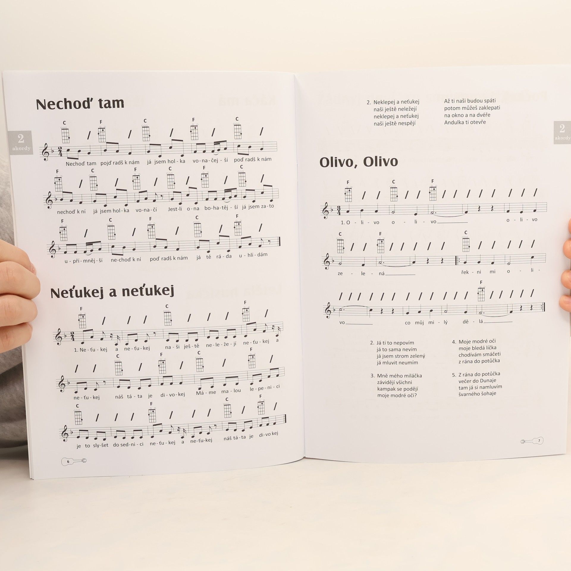 Lidovky a další písně pro ukulele na 2–5 akordů, výroba hudeb.nástrojů G+W