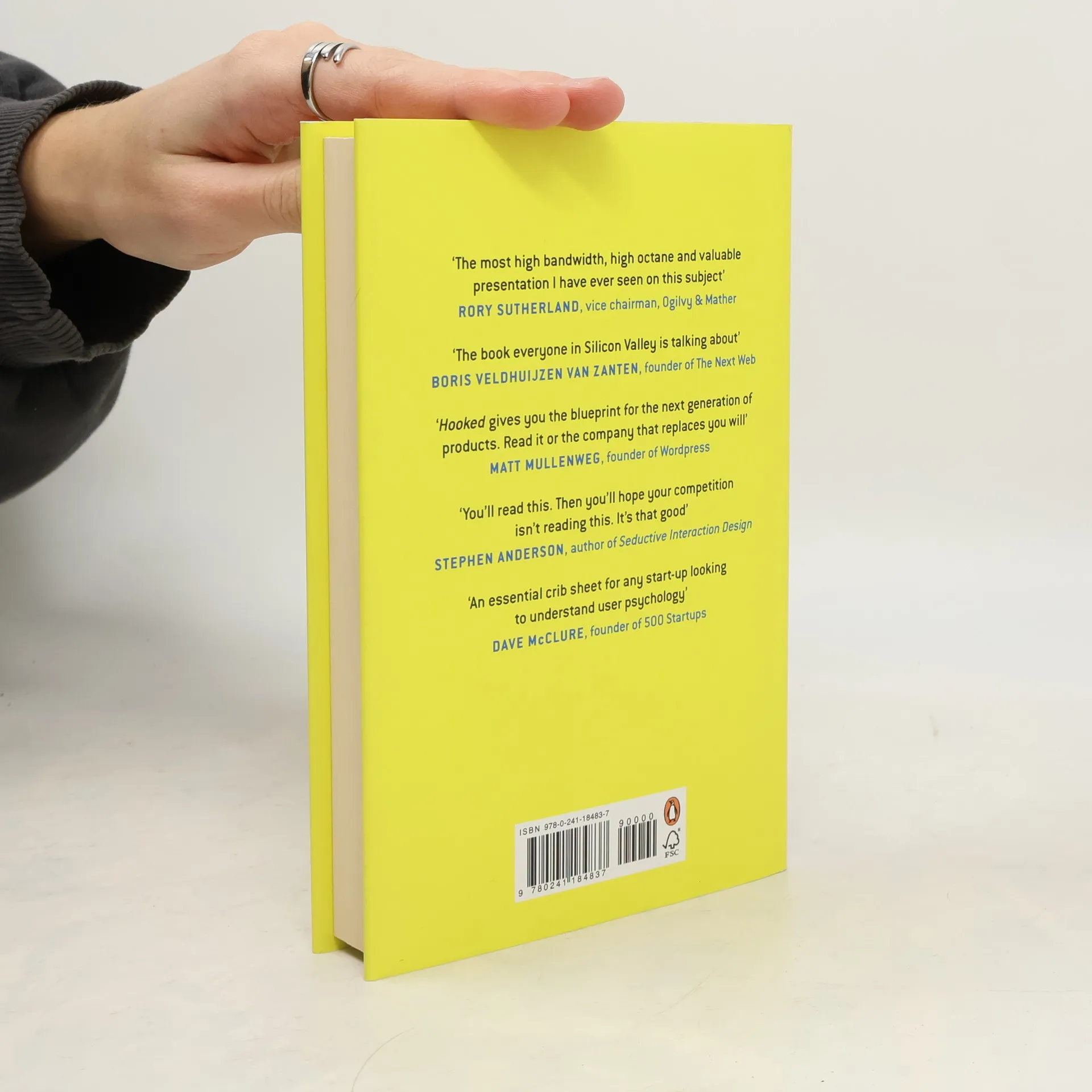 This book introduces readers to the Hook Model, a four steps process companies use to build customer habits. Through consecutive hook cycles, successful products reach their ultimate goal of bringing users back repeatedly -- without depending on costly advertising or aggressive messaging. Hooked is a guide to building products people can't put down. Written for product managers, designers, marketers, startup founders, and people eager to learn more about the things that control our behaviors.
