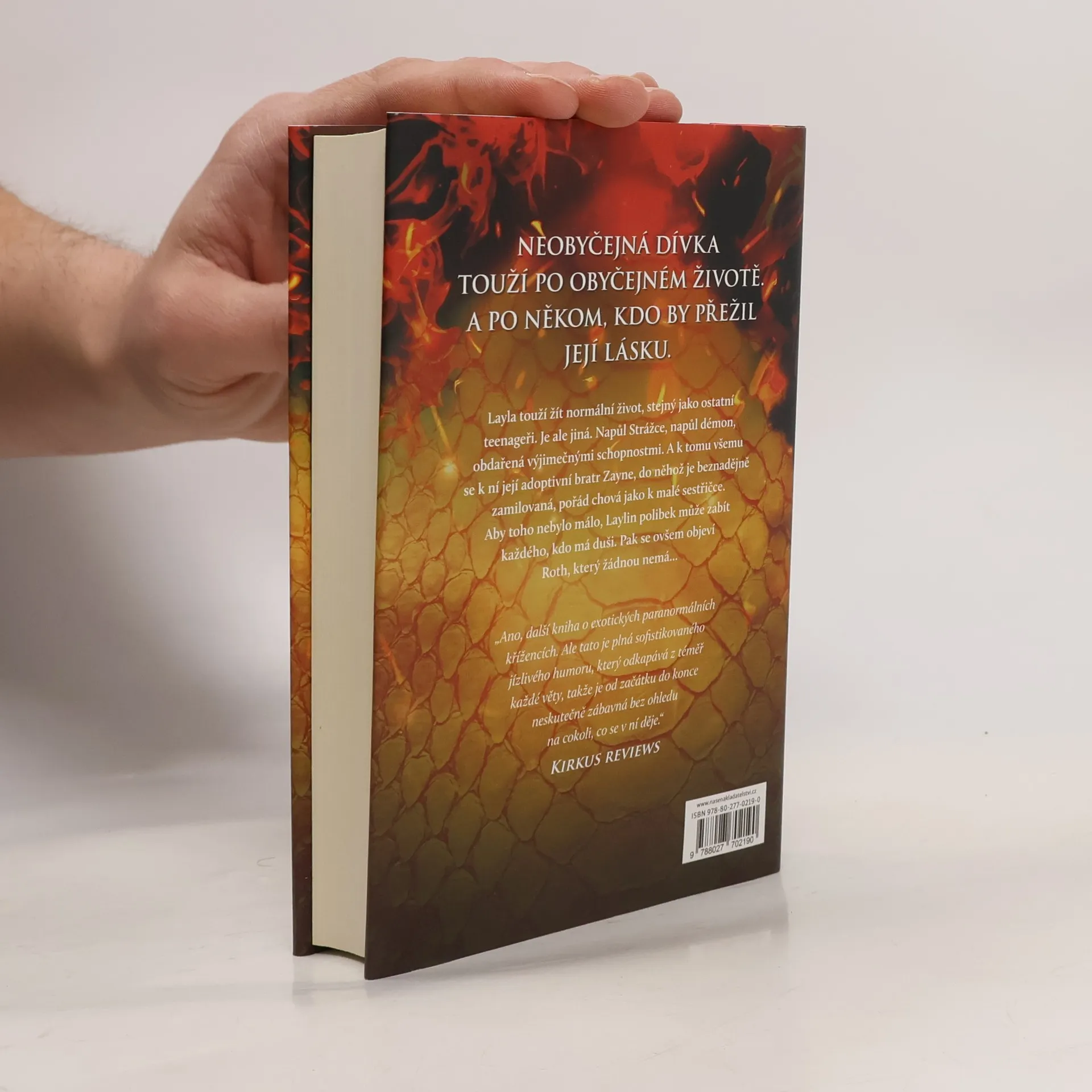 Jediný polibek může zabít Layla touží vést normální život teenagera. Chce trávit čas ve škole s kamarády a chodit na rande. Je ale jiná než ostatní a její celoživotní láska, adoptivní bratr Zayne, s ní jedná jako s malou sestřičkou. Zayne je součástí klanu Strážců, kteří byli shůry pověřeni lovem démonů a obranou lidstva. Layla je napůl Strážce, napůl démon a je obdařena výjimečnými schopnostmi. Její polibek má navíc smrtící účinky na každého, kdo má duši. Na scénu vstupuje Roth, výřečný a sebevědomý démon, který Laylu vyvádí z míry, protože zná její nejhlubší tajemství. Roth je šarmantní, pohledný a sexy. Pro Laylu je proto čím dál obtížnější držet si ho od těla a nevěřit jeho slovům, která do jejího života vnášejí pochyby. Démoni navíc nemají duši… Layla stojí před obtížnou volbou, která se jí může stát osudnou. Starosti s polibkem jdou stranou ve chvíli, kdy se na obzoru začne rýsovat povstání démonů, které může narušit rovnováhu života na Zemi. A Layla ví, že musí udělat vše pro to, aby povstání zabránila, a to i za cenu oběti a zrady vlastní rodiny. První díl série Dark Elements.