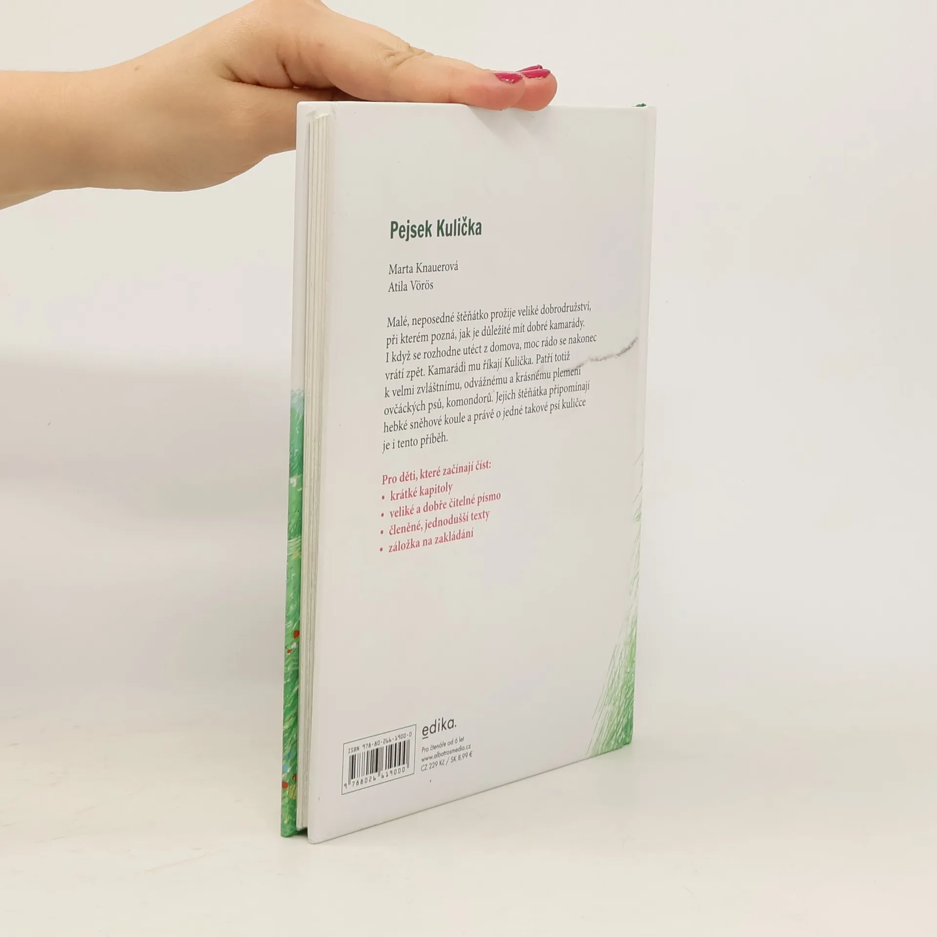 Malému, neposednému pejskovi říkají jeho kamarádi Kulička. Patří totiž k odvážnému plemeni ovčáckých psů, komondorů, kteří při běhu vypadají jako bílé letící koule. Dobrodružný příběh o Kuličkovi zvládnou přečíst i začínající čtenáři, kterým kniha nabízí krátké kapitoly, veliké a dobře čitelné písmo, jednodušší texty. A nechybí ani záložka na zakládání!