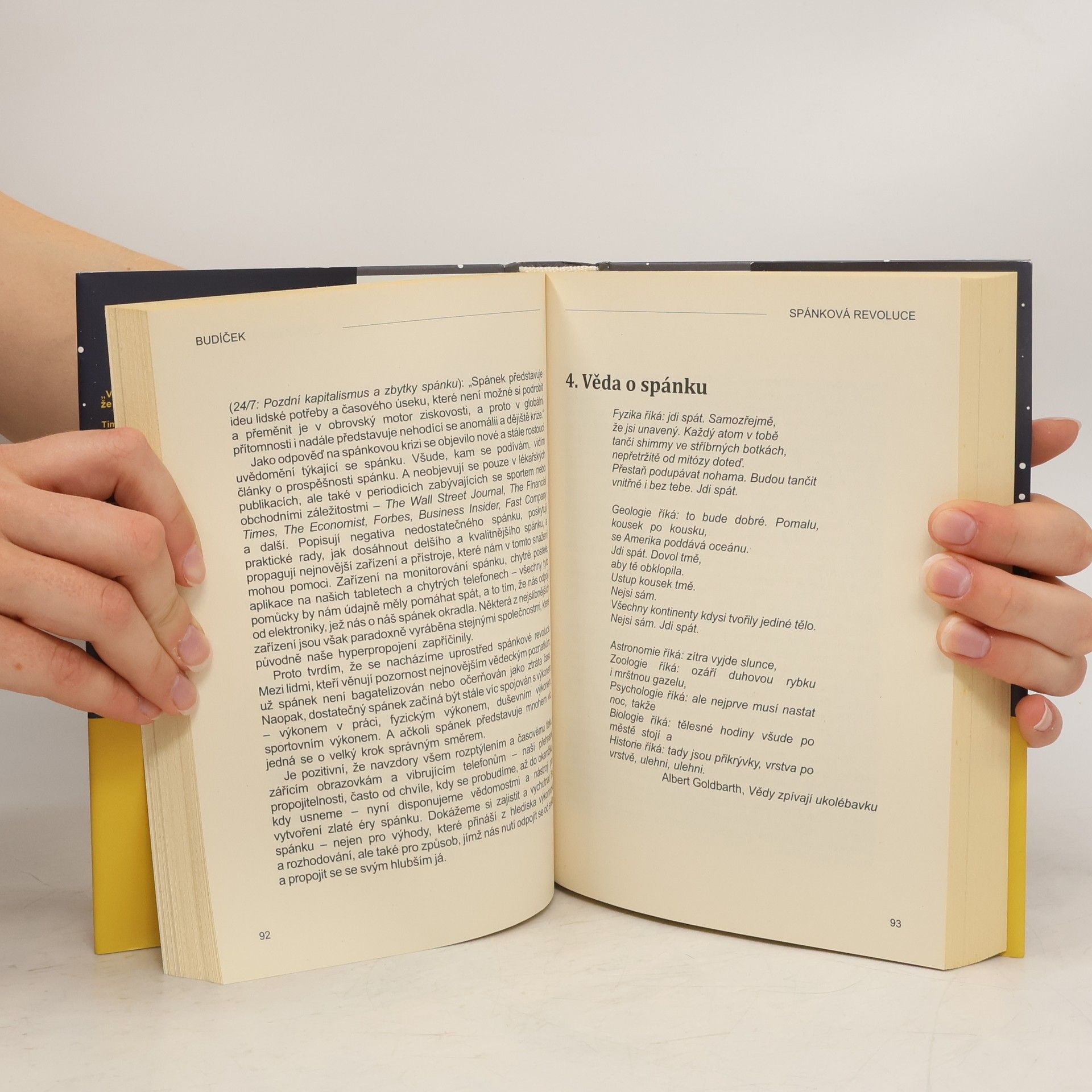 Chceme-li něčeho docílit, je občas potřeba se na to vyspat! Nacházíme se uprostřed krize způsobené spánkovou deprivací, která má dalekosáhlé důsledky – pro naše zdraví, pracovní výkon, vztahy a také pro naši spokojenost. Spoluzakladatelka a šéfredaktorka zpravodajského webu The Huffington Post ve své nové knize směle prohlašuje, že to, co skutečně potřebujeme, je spánková revoluce. Získat zpět kontrolu nad svými životy můžeme pouze tak, že obnovíme svůj vztah ke spánku. V dnešním zrychleném, vždy připojeném, neustále vystresovaném a spánkově deprivovaném světě je naše potřeba kvalitně prospané noci důležitější – a současně nepolapitelnější – než kdykoli předtím. Spánková revoluce bije na poplach kvůli celosvětové spánkové krizi a zároveň nabízí podrobný plán, jak dosáhnout velkého spánkového procitnutí, které nám pomůže transformovat naše životy, společenství i celý svět.