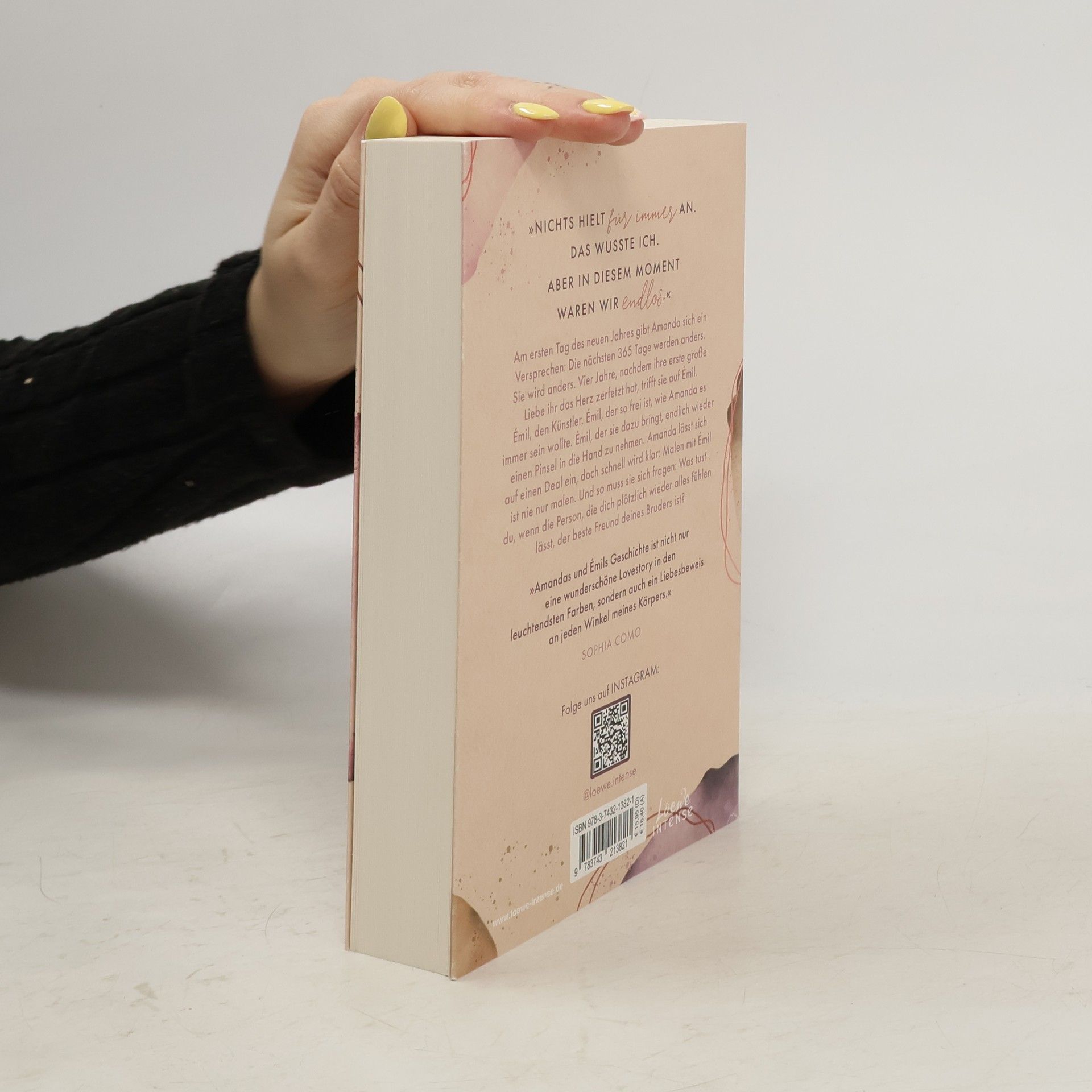 »Nichts hielt für immer an. Das wusste ich. Aber in diesem Moment waren wir endlos.« Am ersten Tag des neuen Jahres gibt Amanda sich ein Versprechen: Die nächsten 365 Tage werden anders. Sie wird anders. Vier Jahre, nachdem ihre erste große Liebe ihr das Herz zerbombt hat, trifft sie auf Émil. Émil, den Künstler. Émil, der so frei ist, wie Amanda es immer sein wollte. Émil, der sie dazu bringt, endlich wieder einen Pinsel in die Hand zu nehmen. Amanda lässt sich auf einen Deal ein, doch schnell wird klar: Malen mit Émil ist nie nur malen. Und so muss sie sich fragen: Was tust du, wenn die Person, die dich plötzlich alles wieder fühlen lässt, der beste Freund deines Bruders ist? Das Finale der Jetzt-Trilogie Kunst , Liebe , Social Media : Im abschließenden Band ihrer New Adult-Reihe verwebt SPIEGEL-Bestsellerautorin Gabriella Santos de Lima diese zeitlosen Themen und ihre Auswirkungen auf die Gen Z auf gekonnte wie poetische Weise zu einer emotionalen Brother’s-Best-Friend-Romance.