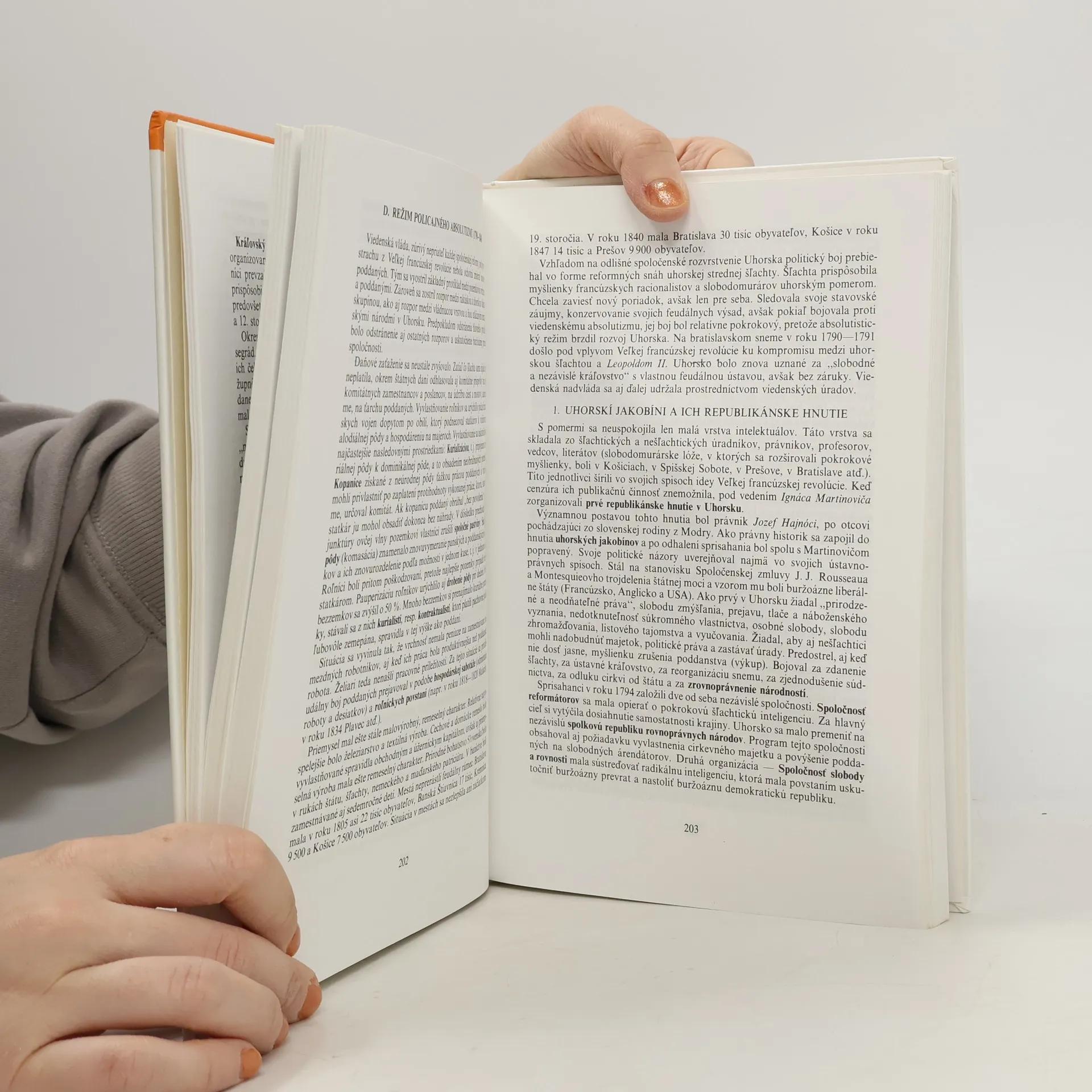 Základný obsah knihy tvorí vývoj štátnej organizácie a správy, medzinárodných vzťahov, ale aj práva a jeho inštitúcií v jednotlivých etapách historicko-štátoprávneho vývoja až do vypuknutia prvej svetovej vojny. Autori tento vývoj sledujú v chronologickej postupnosti v súvislosti s politickými a ekonomickými premenami spoločnosti. História českého a uhorského právaje pertraktovaná vo väčších časových úsekoch, ktoré dovoľujú čitateľovi pochopiť nielen význam právnych inštitúcií pre feudálny i buržoázny štát, ale aj podstatu príčin, ktoré ovplyvňovali vývoj práva.