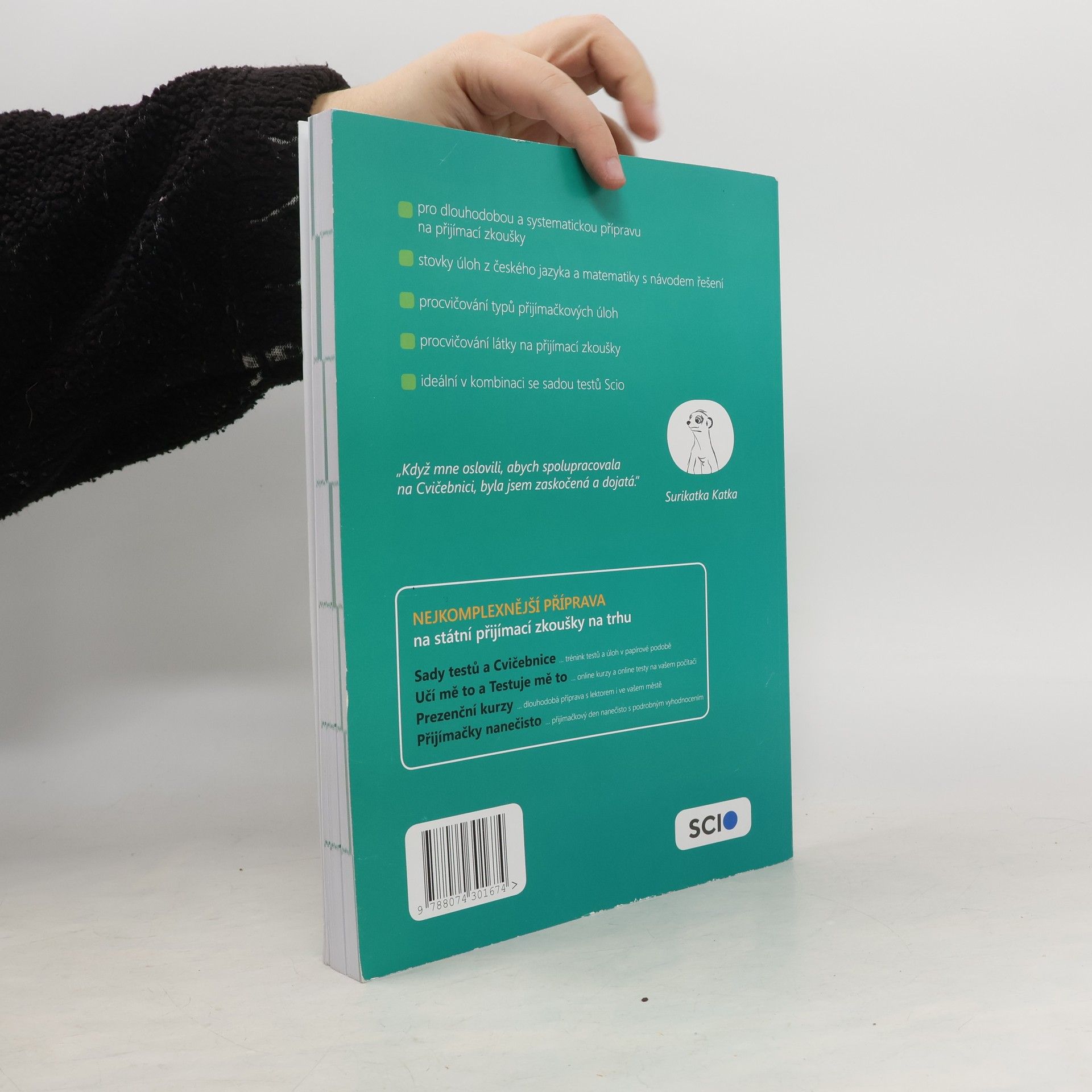 Procvičte učivo k přijímacím zkouškám na typových úlohách s pomocí návodů k řešení. Obsahuje 97 úloh z MA a 145 úloh z ČJ, typové úlohy používané u přijímaček, podrobný návod ke správnému řešení a zábavného průvodce - surikata - k udržení motivace a pozornosti. Žák se seznámí s podobou úloh na přijímací zkoušky. Díky podrobným návodům k řešení s vysvětlením látky se naučí úlohy řešit a zopakuje si učivo. Získá představu, jak na tom je a v čem se má ještě zlepšit. Cvičebnice je koncipována tak, aby se žák nejprve pokusil vyřešit úlohy sám a teprve pak se podíval na návod. Cvičebnice obsahuje celkem 242 úloh z MA a ČJ rozdělených do 7 kapitol: číslo a proměnná; geometrie; funkce a práce s daty mluvnice; sloh a komunikace; literatura; všeobecný přehled.